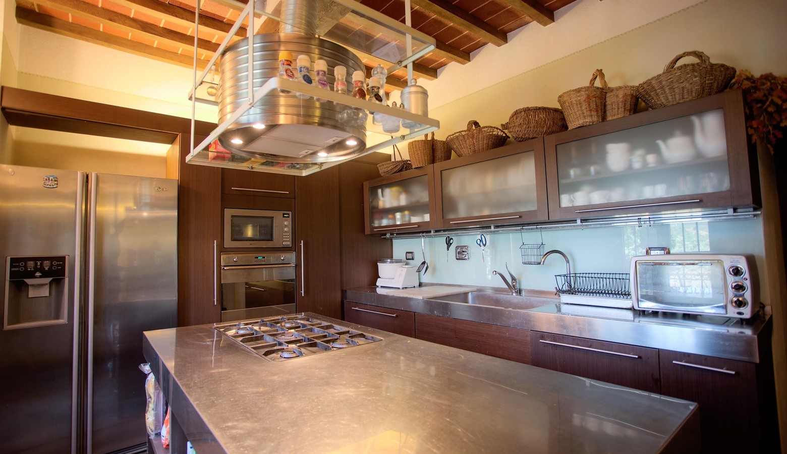 The kitchen is spacious modern kitchen complete with US style fridge/freezer, oven, hob, dishwasher and plenty of workspace for preparing your tuscan delights. The kitchen has double doors leading through to dining terrace.