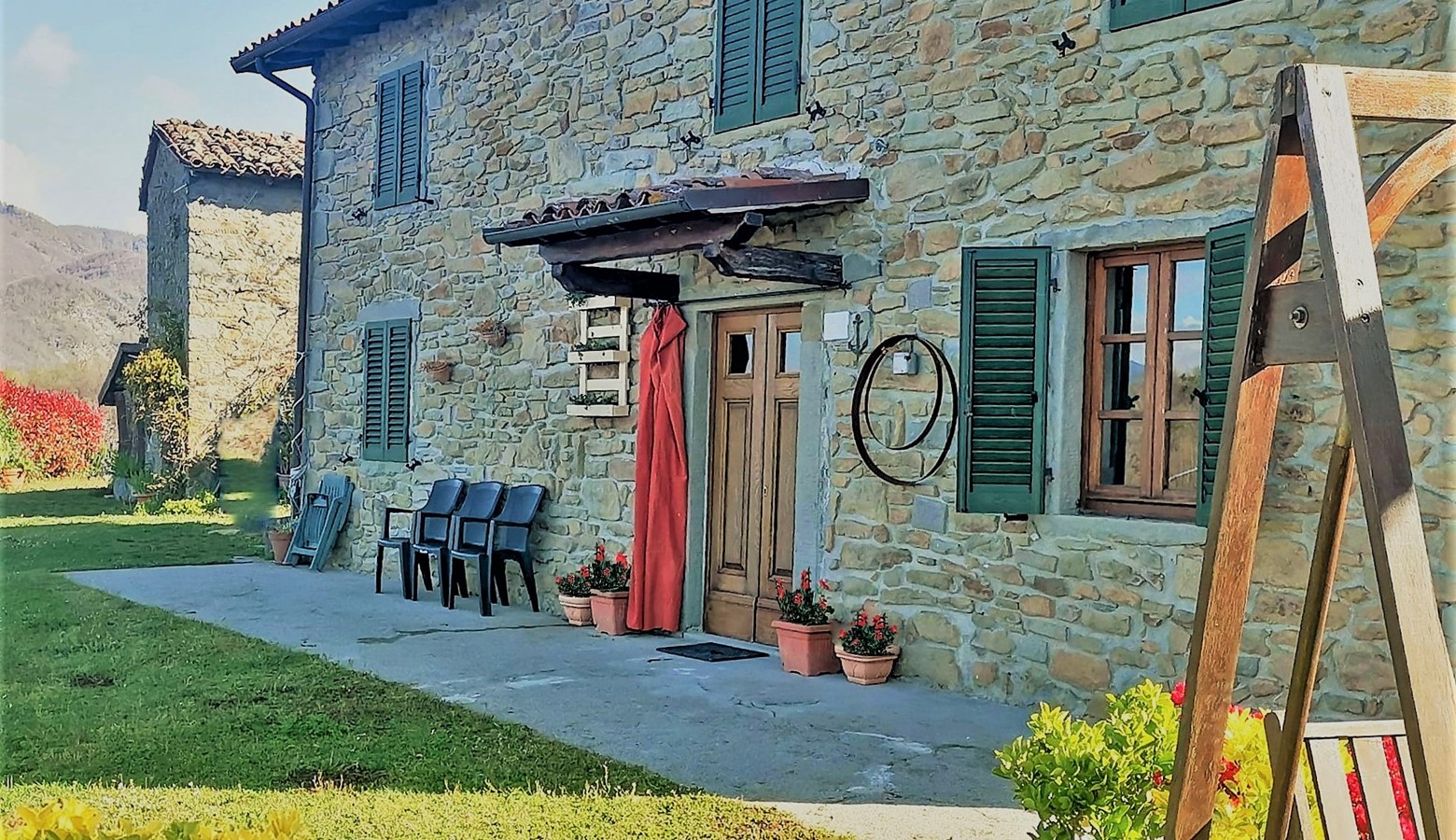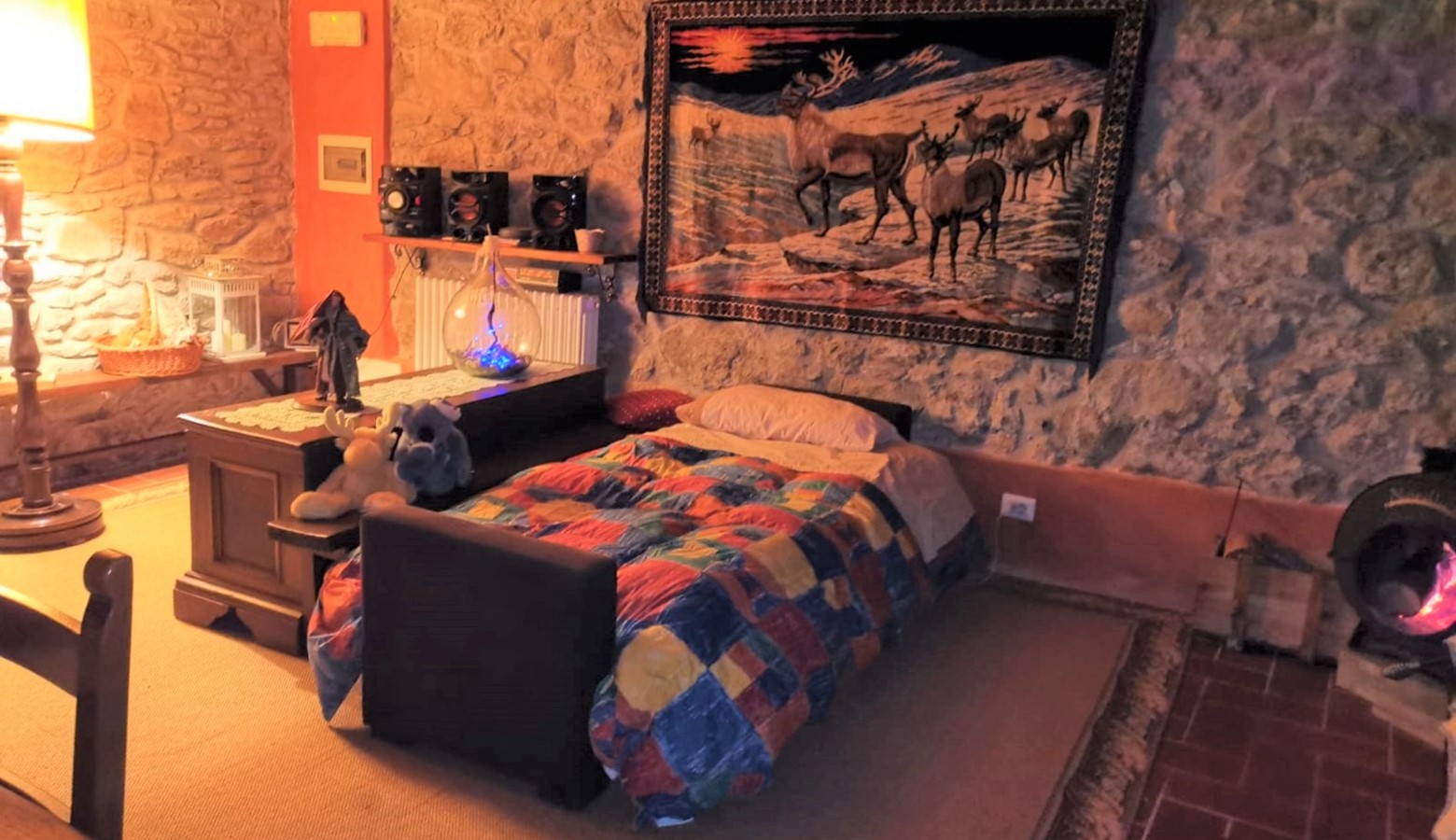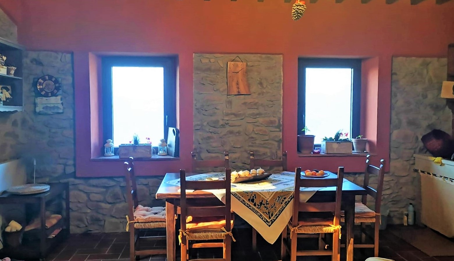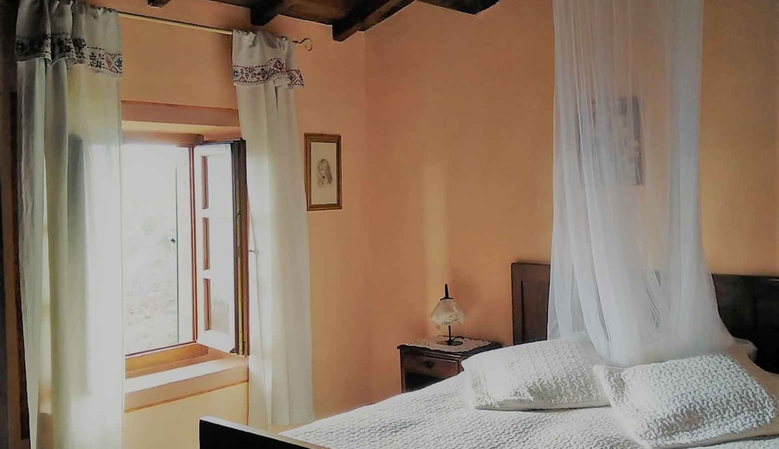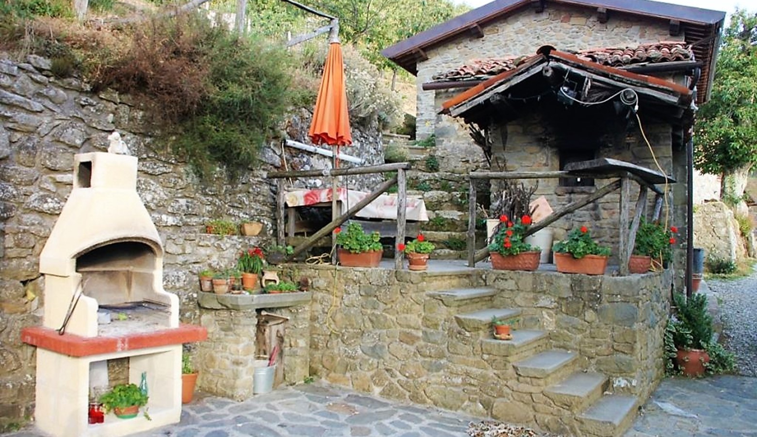 A lovingly restored 2 bedroom rustic detached stone cottage, and separate 1 bed chestnut house (let together and both included in the price), both with original beamed ceilings and flooring, situated in the hills overlooking the beautiful medieval town of barga.