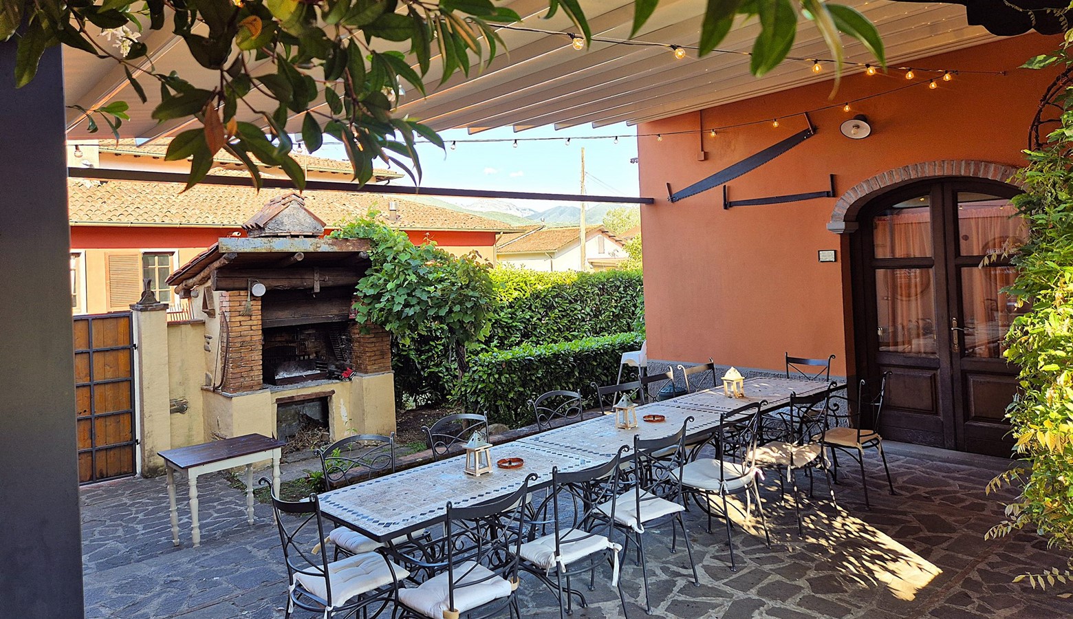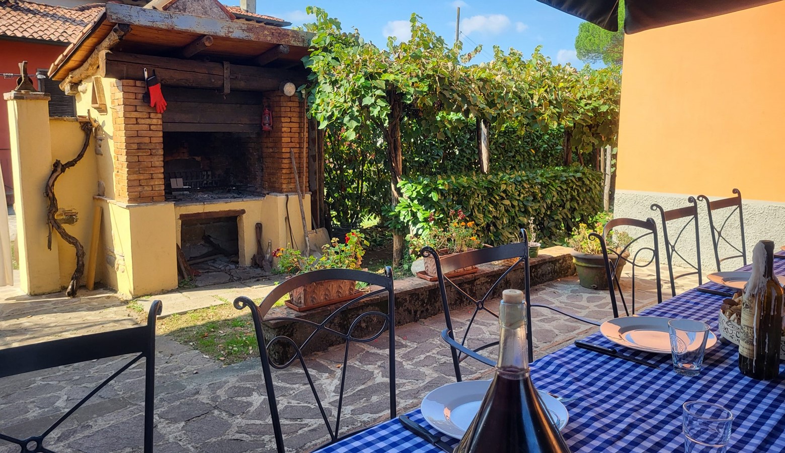 The owner can arrange pizza evenings on request or provide local traditional meals, so if you don't want to go out, just be spoilt at home ! You can even learn to bake bread and make your own pizzas and then enjoy the results! Or, you can order aperitivi by the pool, for pre dinner snacks. There is an outdoor kitchen area and wood oven, reserved for the owner to make meals for guests, but you will eat here, or inside the large 'function' dining room when you book a meal.