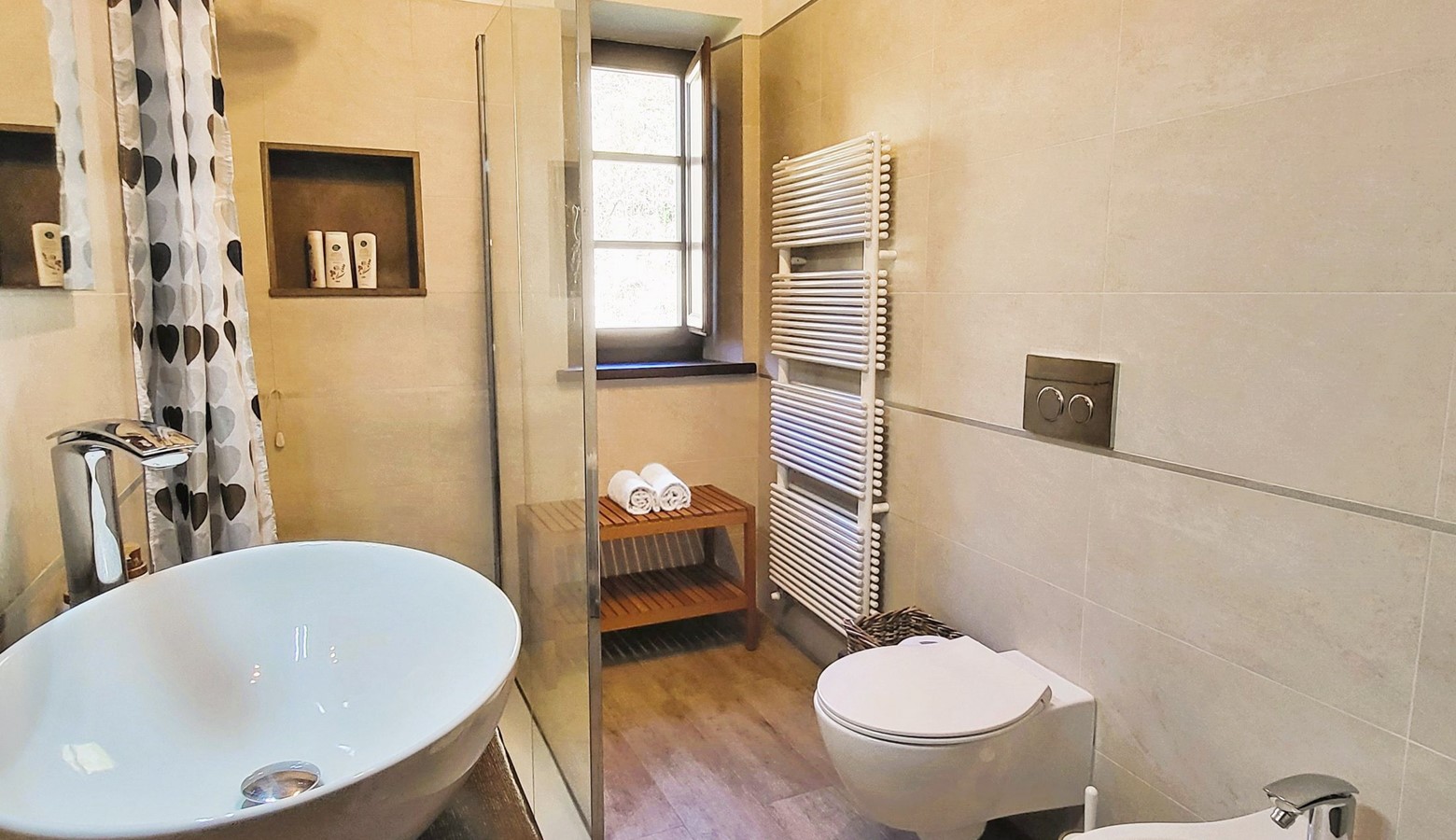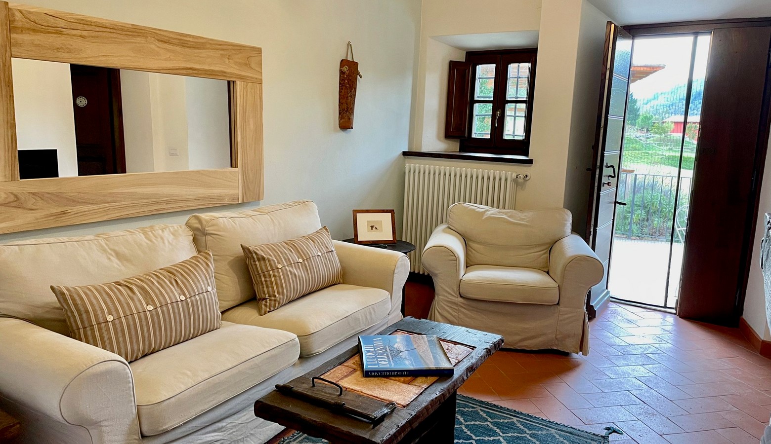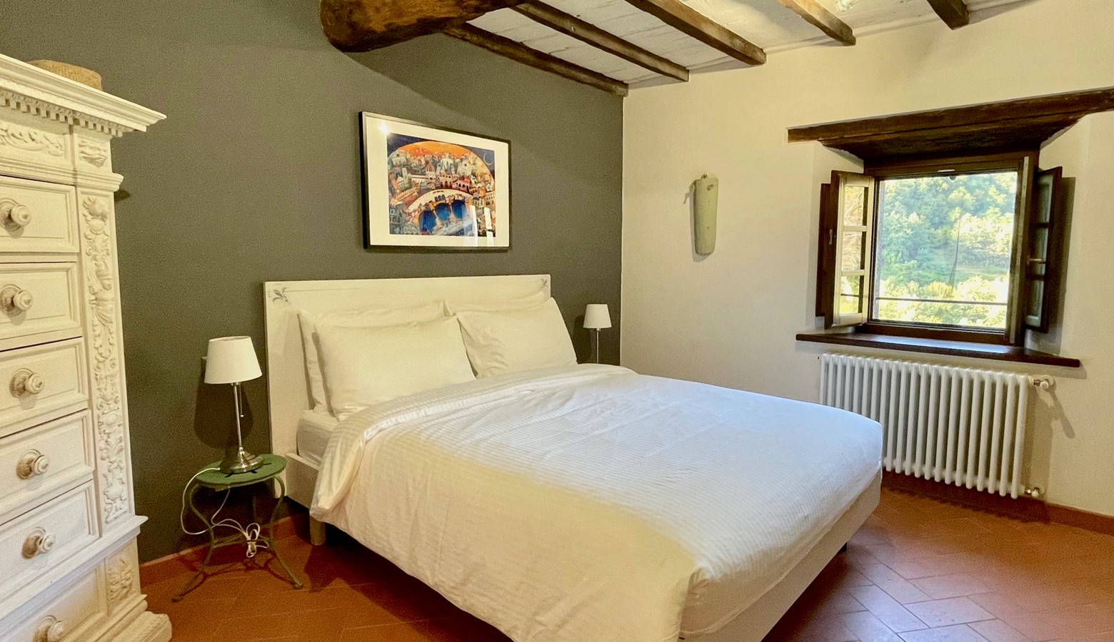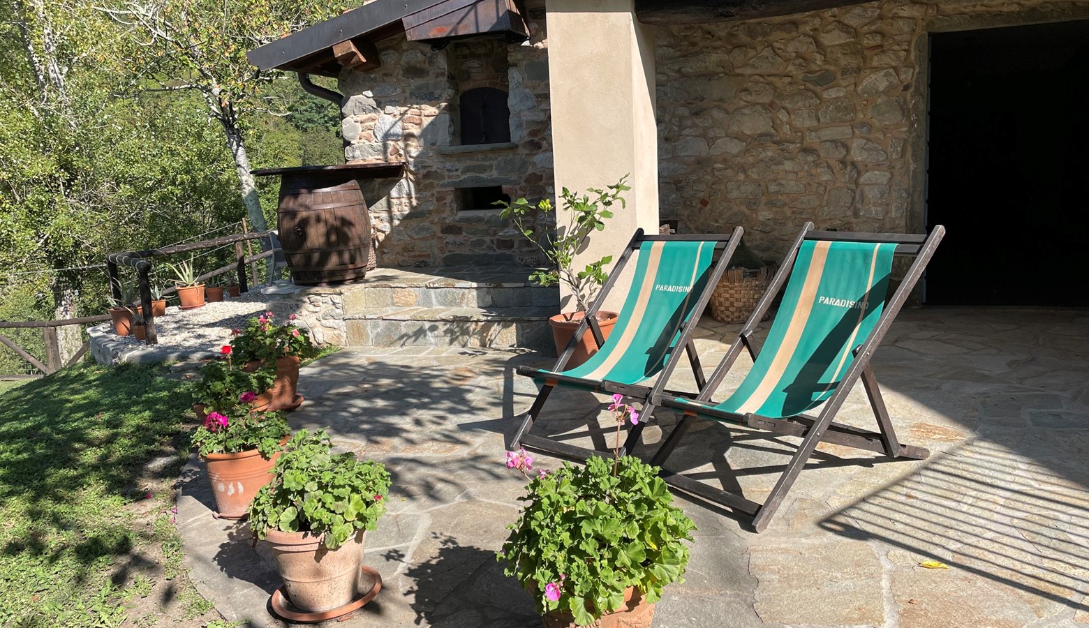 Situated in large grounds, with private access to the river/stream this idyllic location is peaceful and unique. There is a bar/pizzeria just a 1km walk away (downhill), and the train station is 1km away too (although not all trains stop there). The medieval village of Ceserana and its hamlet La Villa are just a 10/15 minute walk away (no facilities, but a lovely walk).
