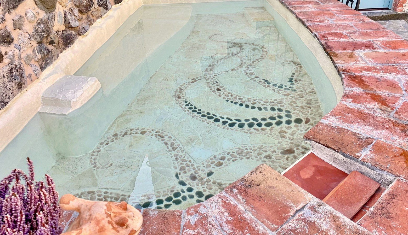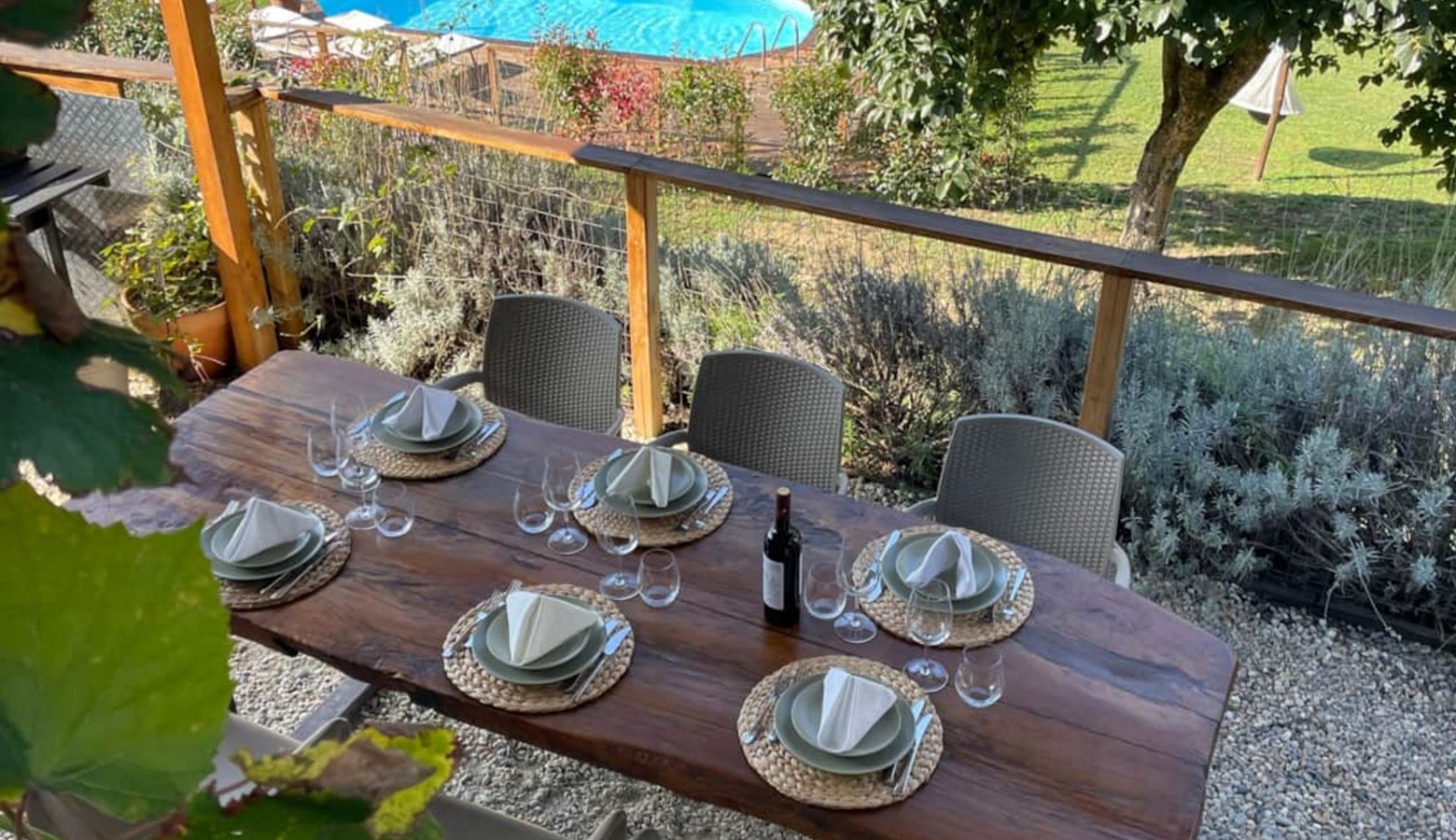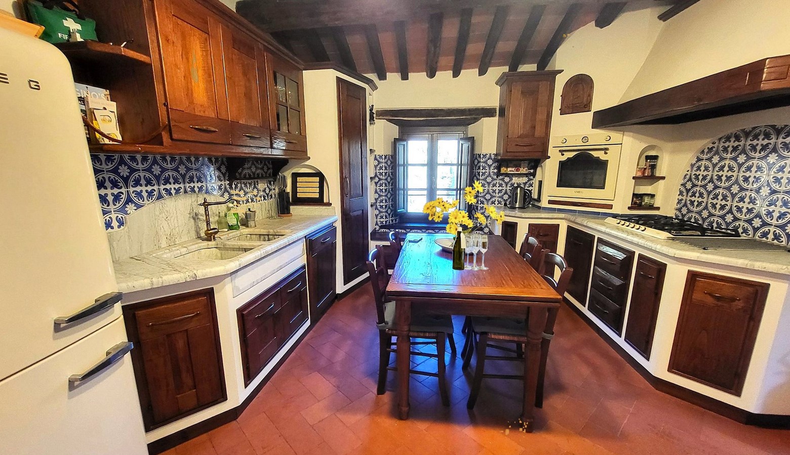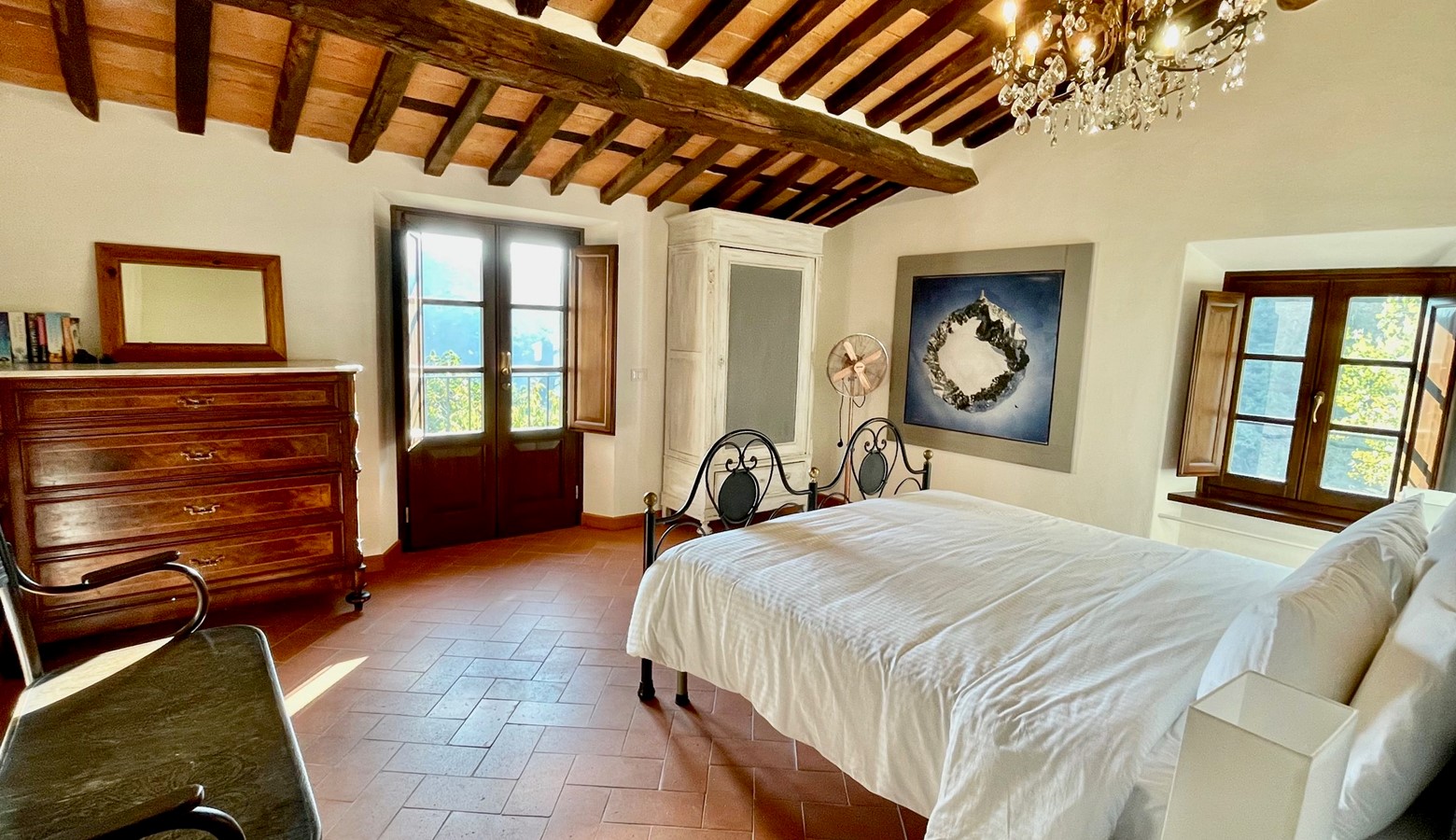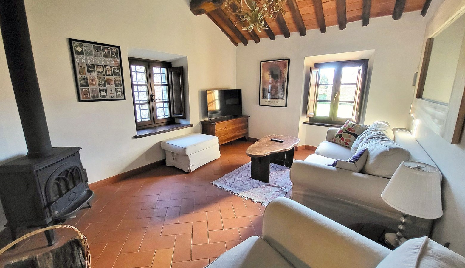 The cottage is tastefully furnished with a mixture of local antique handcrafted furniture, with a splash of Scandi style. There are beamed ceilings, cotto floors, hand made chestnut windows, a fireplace and a woodburner, all perfectly blending with modern bathrooms.