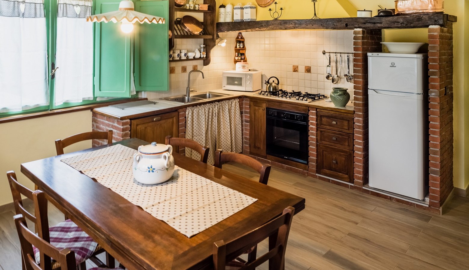 Large tuscan style farmhouse kitchen, with large eating table.