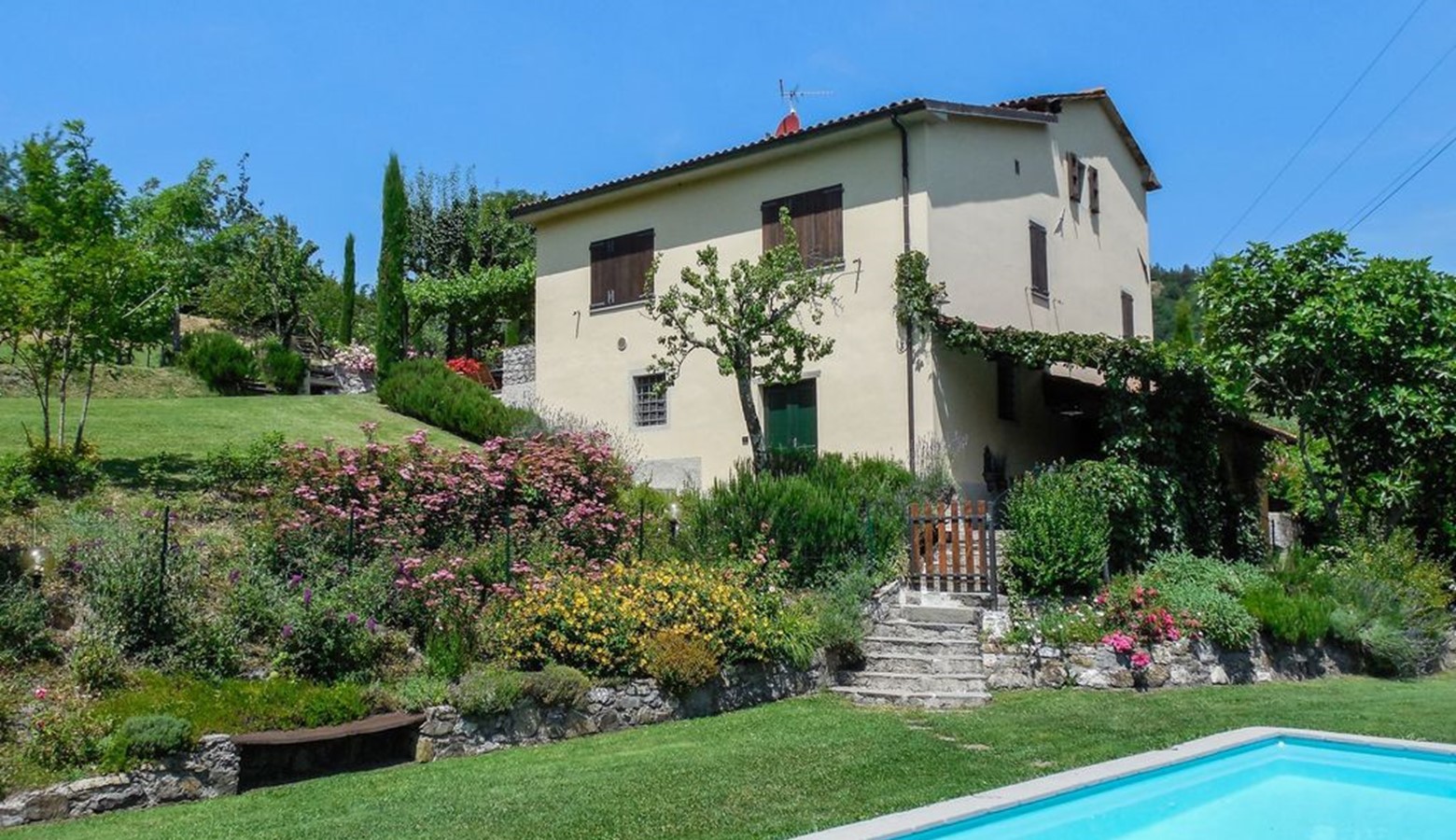 The property is situated in its own extensive grounds/orchards. The views from the house are absolutely beautiful, with the garden enjoying uninterrupted views over the Serchio Valley, which itself is nestled between the Apennine, and Apuane mountain ranges.