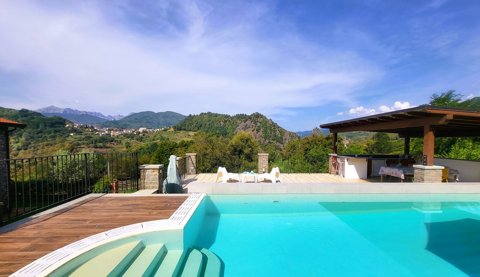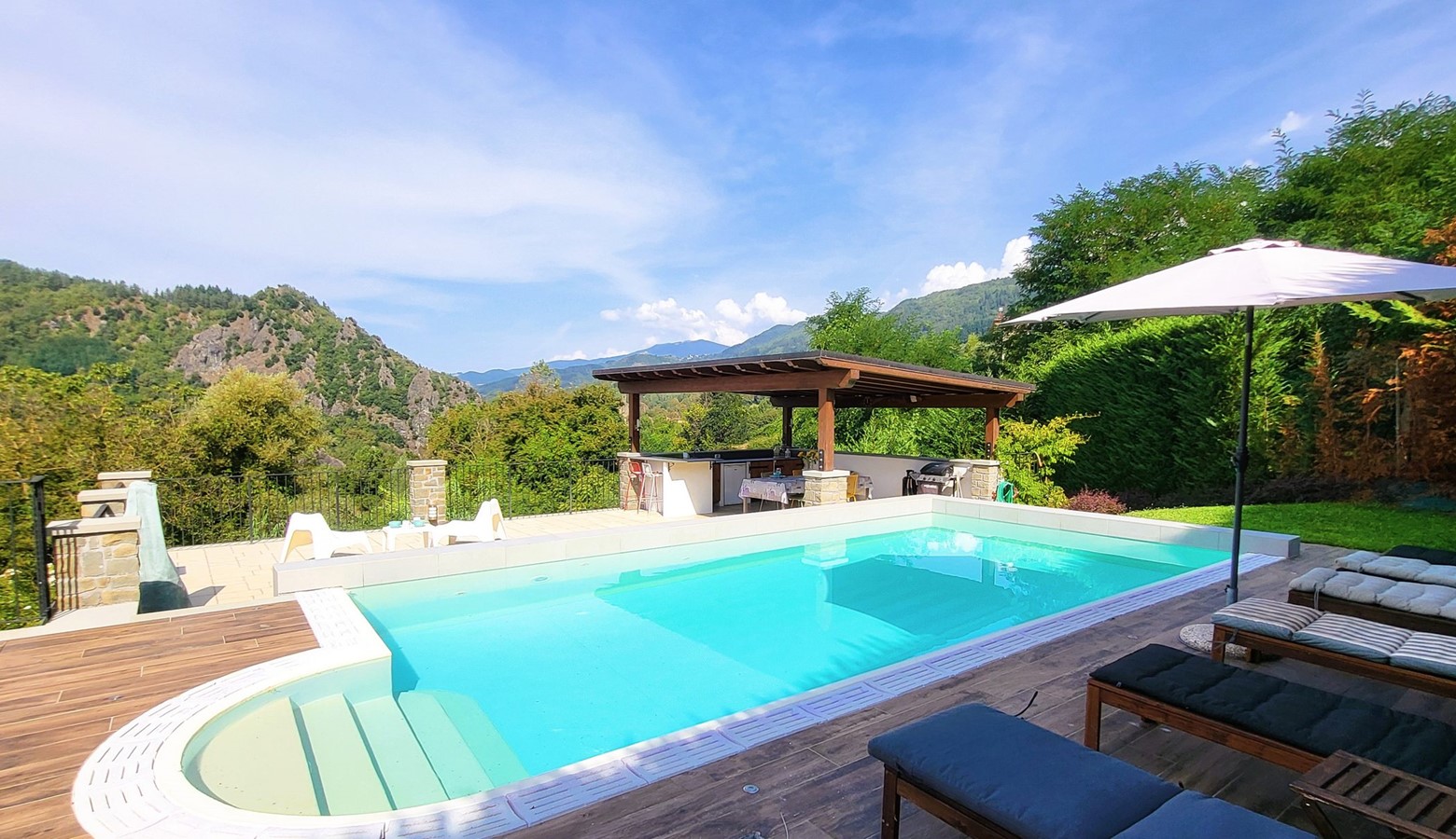 We spent 10 days with our two sons in this uniquely beautiful villa and had a fantastic holiday with the wonderful hosts Patricia and Geir. The absolute highlight is the pool with the outdoor kitchen and a fantastic view of the mountains. Within walking distance is a pizzeria/gelateria/grocery store where you can find everything for your daily needs and where you can eat very well. The location is great for day trips. So we were in Pisa, Lucca, on the beach near Viareggio and also explored the nearby mountains, mountain lakes, caves and fortresses. We can also highly recommend renting an e-mountain bike. This allows you to explore the beautiful surroundings. We loved it so much that we are already planning another holiday in this villa…