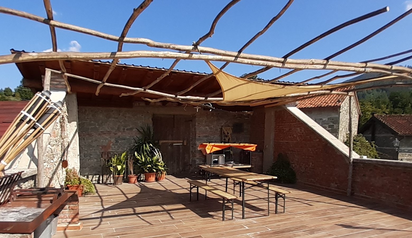Lovely pool days with wonderful views of the mountains. Large covered patio which was nice on the hot days we were there. The roof terrace for BBQ night was amazing. Cozy walking path to the village where there was a really good restaurant. There were only three bedrooms ( a small extra room in the farmhouse with a bunk bed), but large rooms so we could put clothes hangers as room dividers in the room with four beds and share a room with the teenage children. The house is 1 hour up in the mountains, but with several cozy villages in the vicinity for shopping and restaurants. Very nice reception and service by Paolo!!!