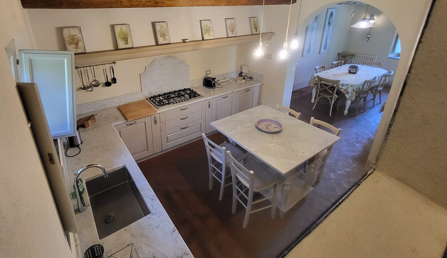 Through arched entrance into main kitchen with , oven, 6 ring hob,