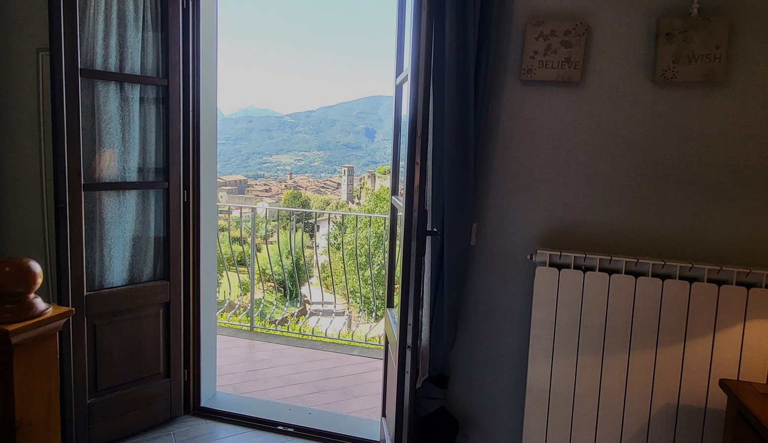 opening the windows to the views over to the Apuan Alps first thing