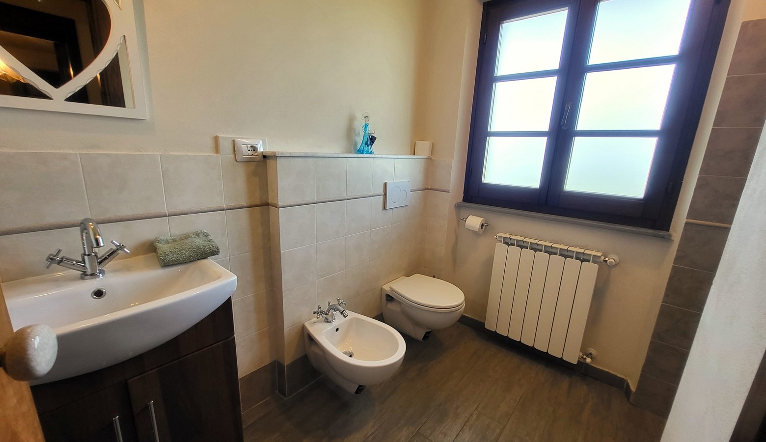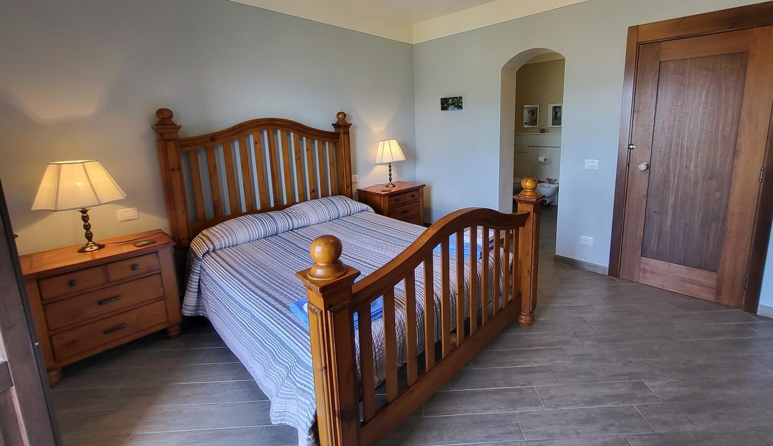 Double bedroom, with en-suite shower room (shower, wc, basin and bidet), and doors leading to balcony.
