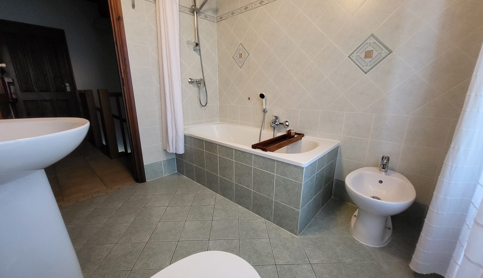 There are extensive mature gardens, and a pool (6m x 12m, with internal steps), spacious sunbathing area, bbq, table tennis, eating terrace and breathtaking views.