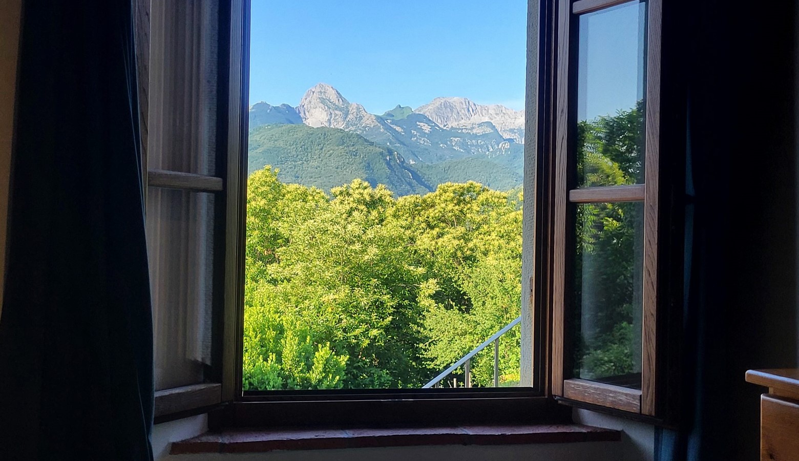 Modern comforts have not been forgotten and there are six bedrooms, 4.5 bathrooms (two of which are en-suite), two kitchens, two living/dining areas, and a 'quiet room' leading from one of the dining rooms.... Each room has a wonderful view, and one can even bathe in the bathroom with a stunning view of the famous uomo morto, part of the apuane mountain range!