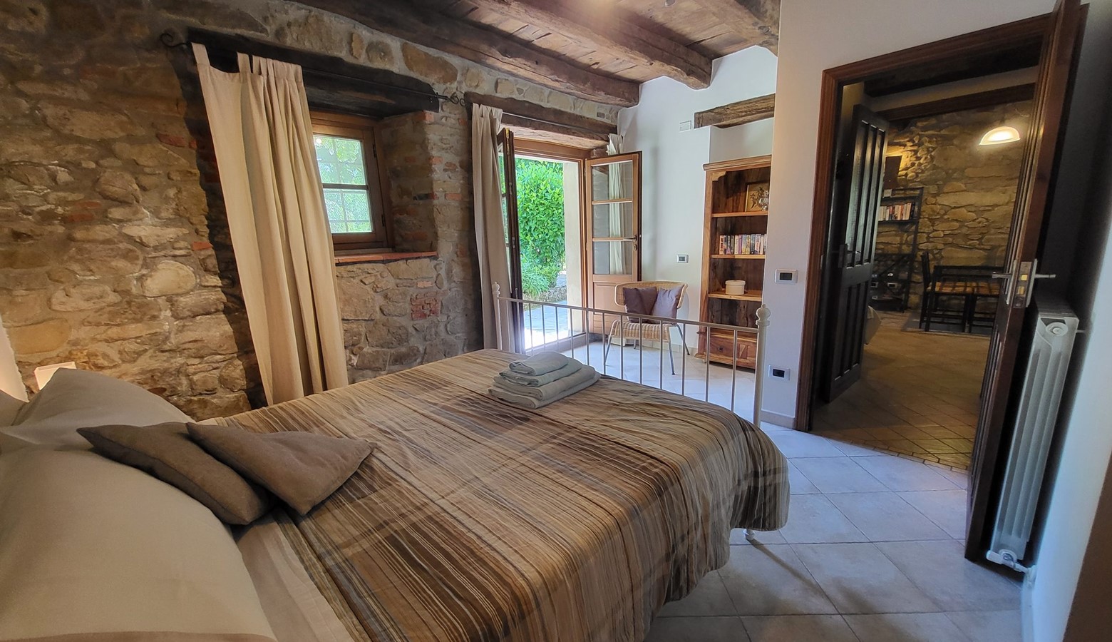 This spacious and airy property has been renovated with a great deal of care, and boasts original chestnut beams, hand made chestnut windows (some of which are traditional tuscan style arched windows) and exposed stonework.