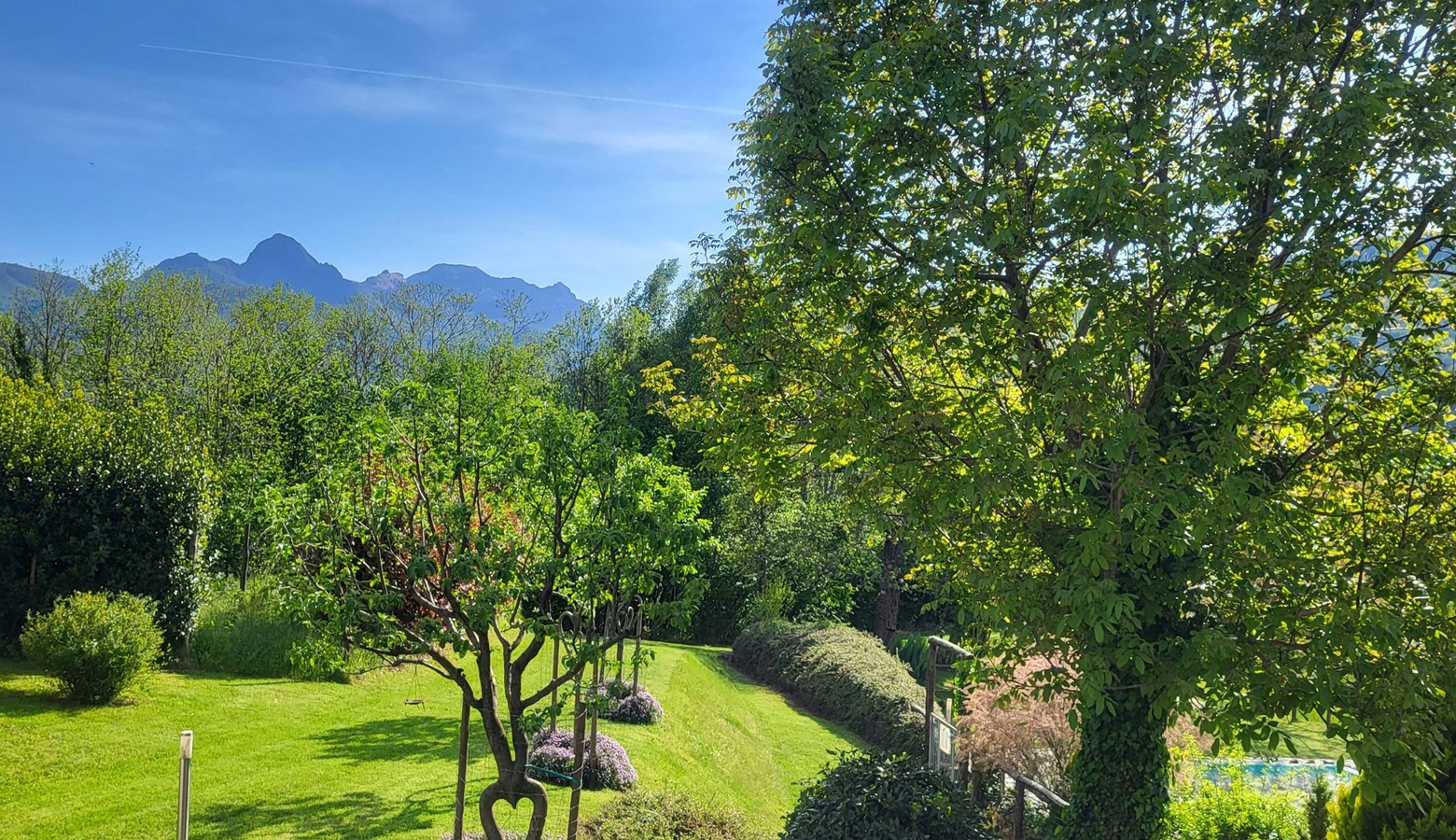 Despite being a new renovation, the gardens have a feeling of maturity, with many mature trees, shrubs, flowers and even rockery areas, designed in such a manner so as not to detract from the amazing views of the mountains (including the famous uomo morto) beyond.