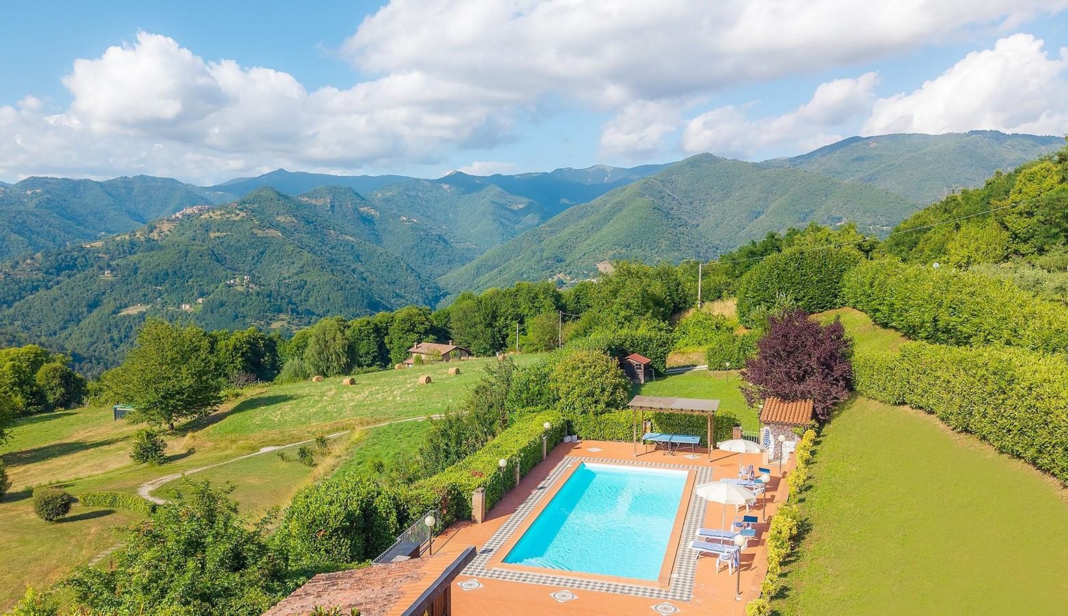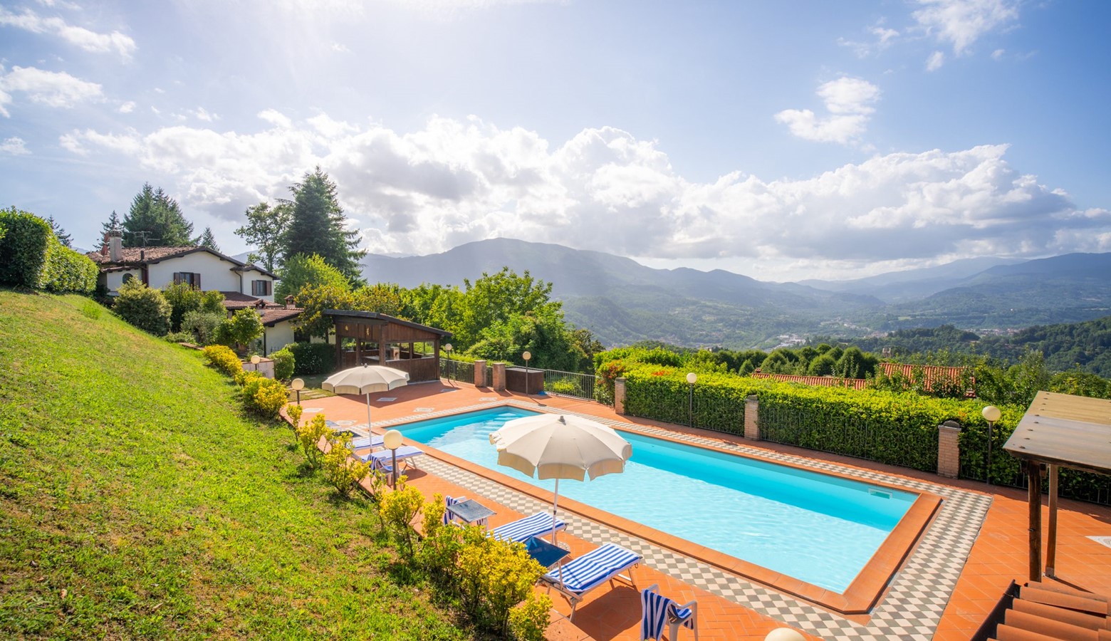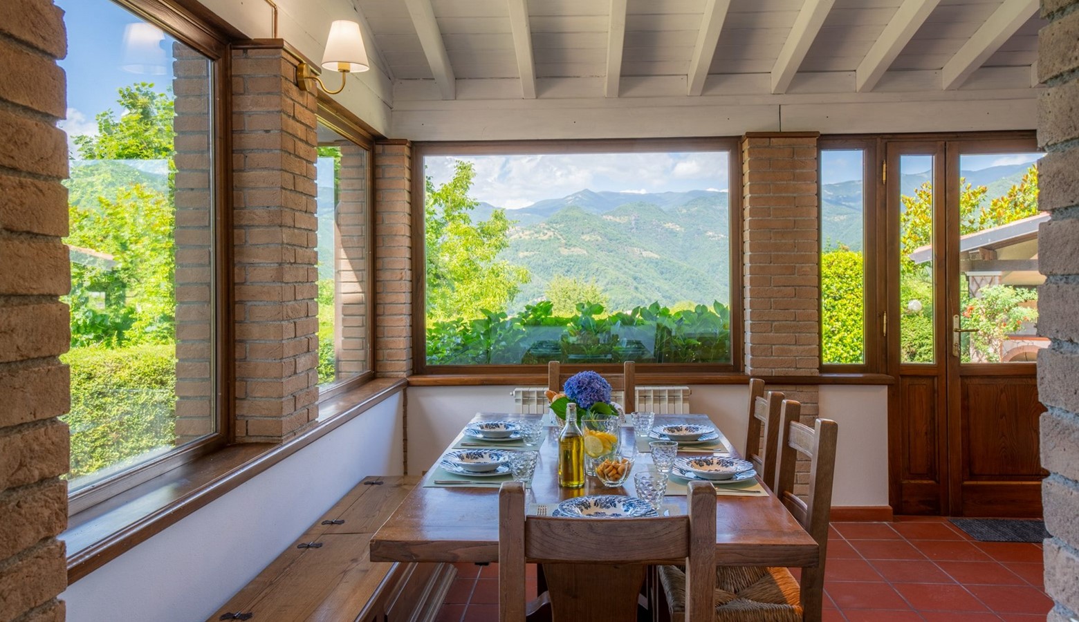 This villa is situated within a flat enclosed garden with stunning mountain view a 45 min drive from Lucca. This is a really peaceful location, with far reaching country and mountain views, and only a 5 min drive from the market town of Castelnuovo di Garfagnana with its shops, bars, restaurants and train station. Gallicano, just a 12 minute drive has similar facilities as well as a hypermarket.