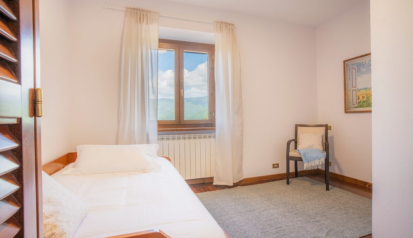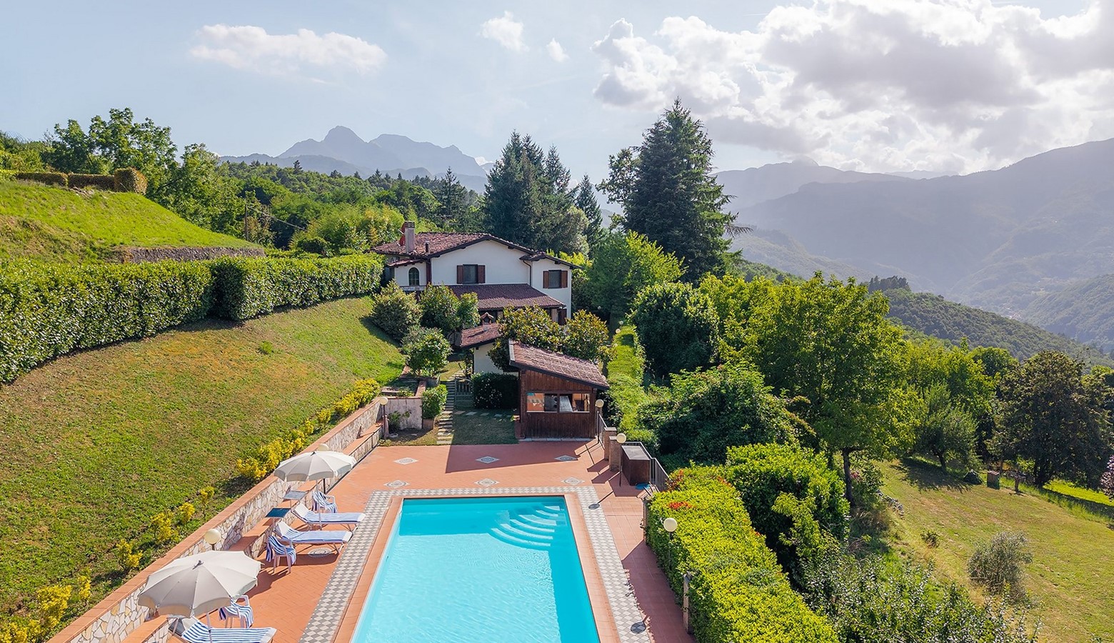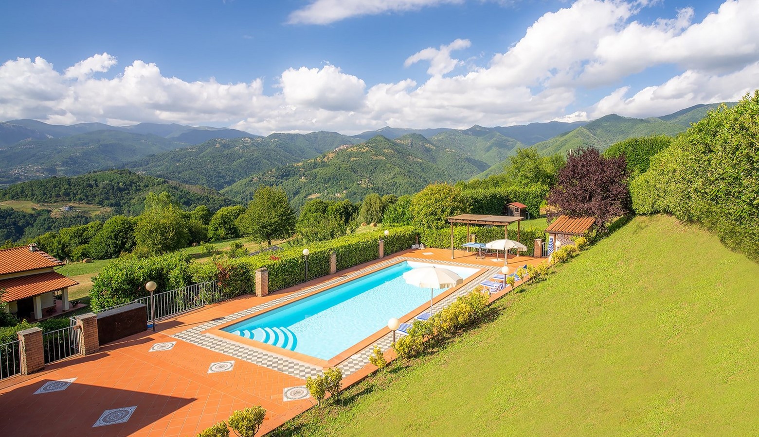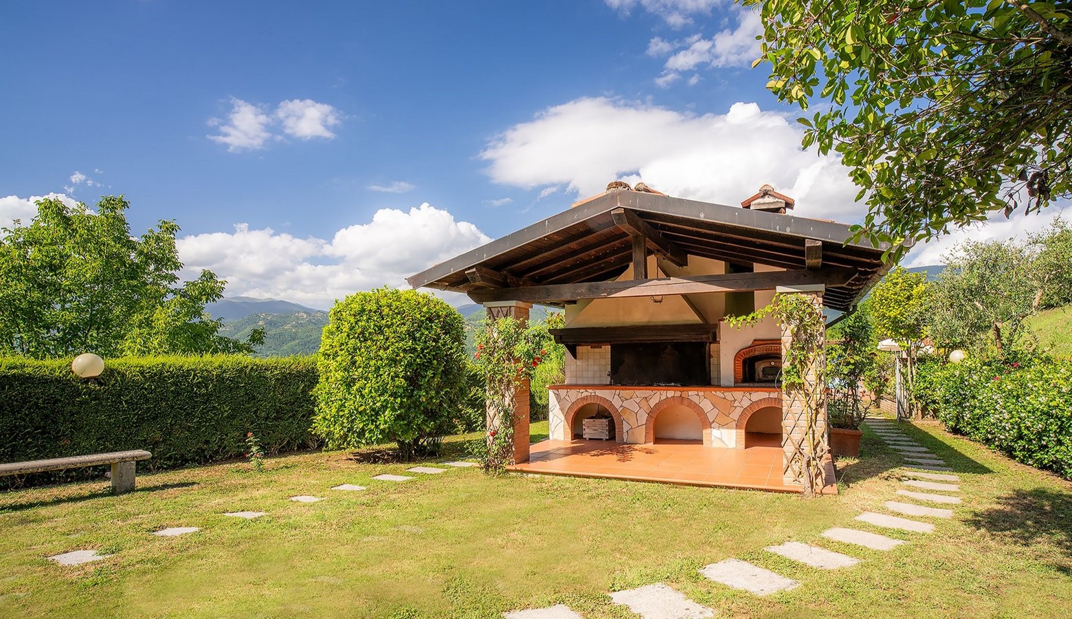 This villa is situated within a flat enclosed garden with stunning mountain view a 45 min drive from Lucca. This is a really peaceful location, with far reaching country and mountain views, and only a 5 min drive from the market town of Castelnuovo di Garfagnana with its shops, bars, restaurants and train station. Gallicano, just a 12 minute drive has similar facilities as well as a hypermarket.