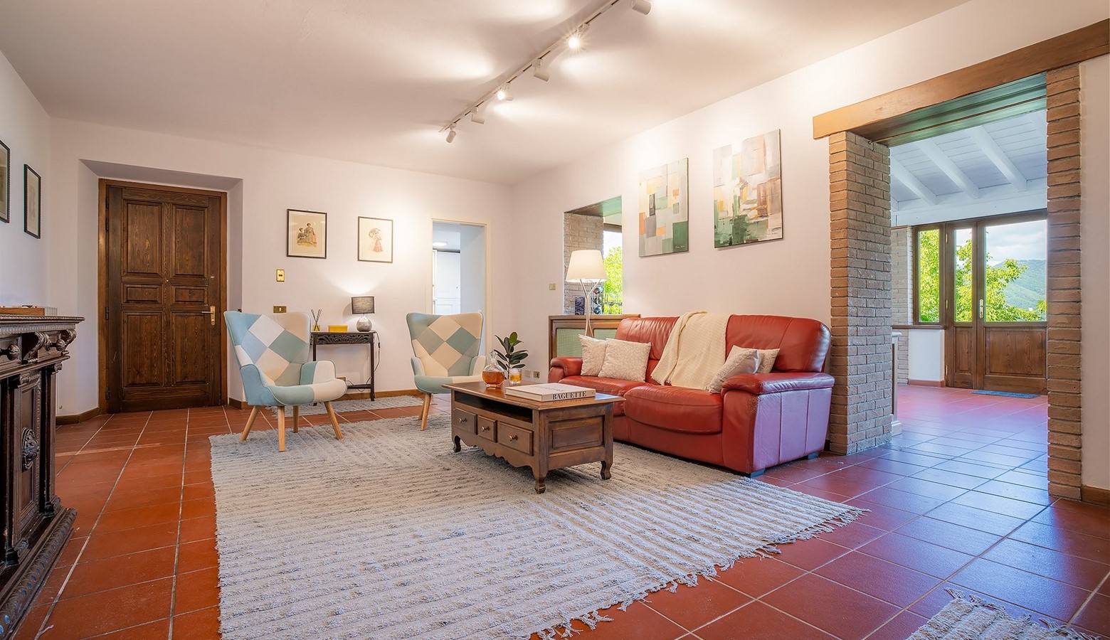 - Living room leads through to spacious light veranda/dining room with exposed beams overlooking the garden and glorious mountain views. Light enters from every side, creating a calm and harmonious atmosphere.