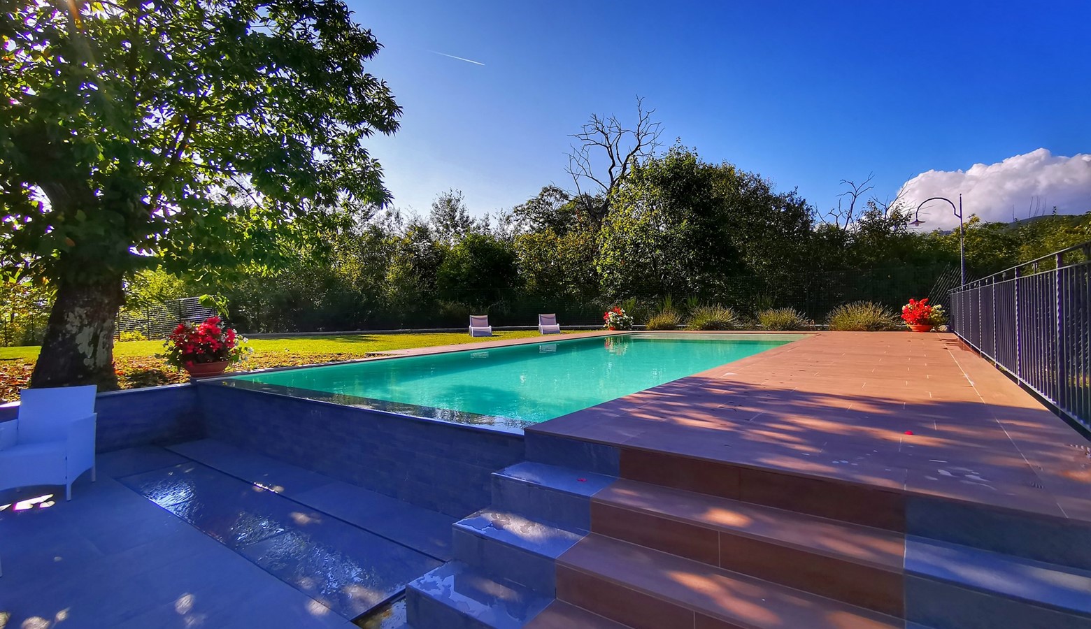 Situated in a mountainous and rural position with wonderful views of the Appennines, this spacious and private 2 bedroom cottage with private solar heated infinity style pool has been sympathetically refurbished, all brand new and modern, but with beamed ceilings and solid wood windows. The house is spacious, light and airy and perfect for a mountain retreat.