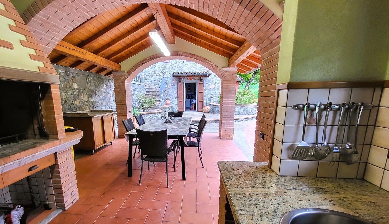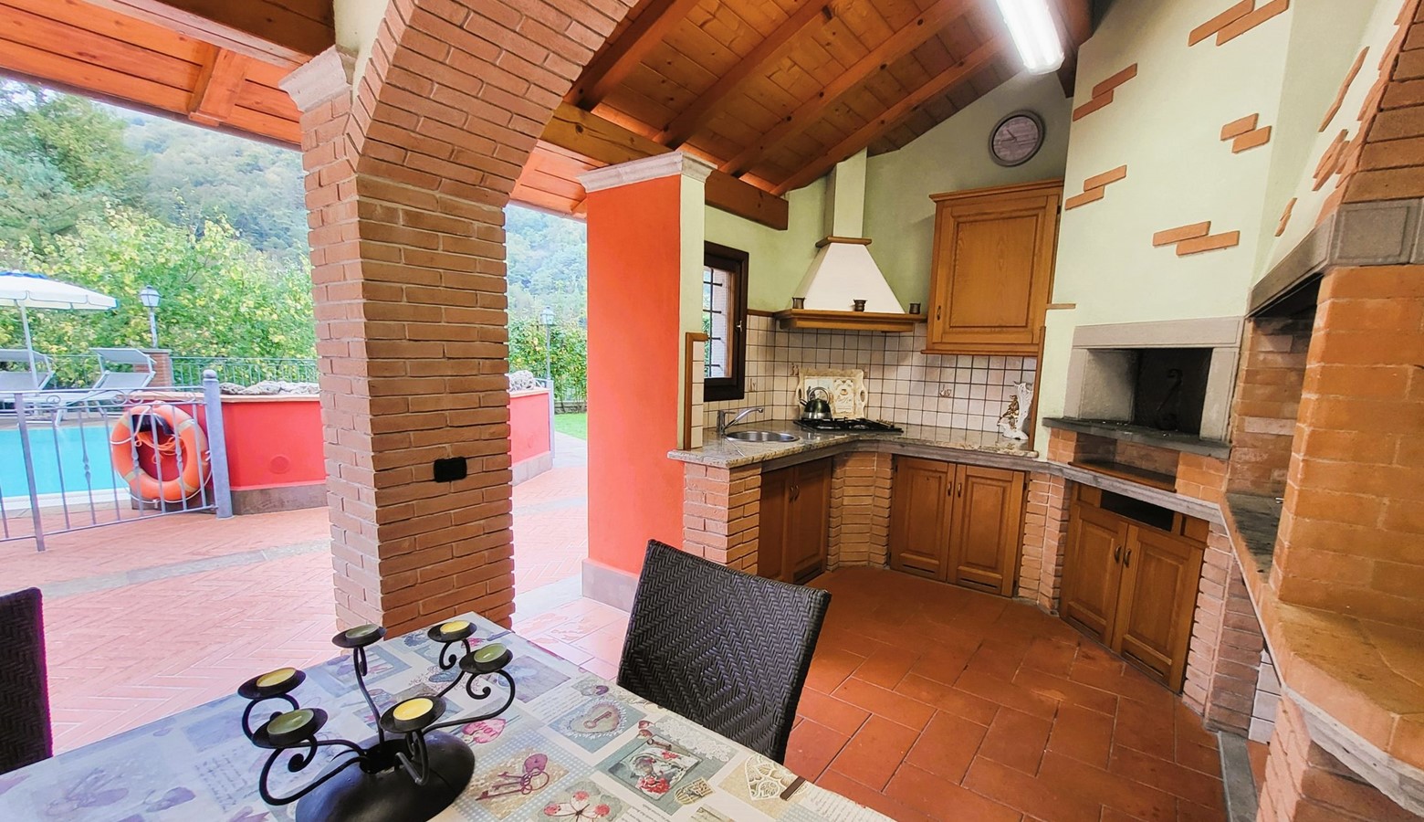 Outdoors there is wonderful scenery, and al fresco living has been carefully thought out, with a luxurious infinity pool, surrounded by a spacious patio area with wonderful outdoor kitchen and covered loggia. Perfect tuscan living! The outdoor areas and pool are all lit at night, providing a magical ambience.