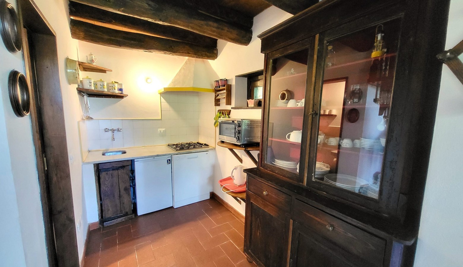 A romantic little barn, ideal for 2, or for a small family. Cosy and romantic atmosphere. Unique place with a wooden mezzanine floor laid over solid chestnut beams. Dining area, kitchen furnished with traditional in farmhouse style furniture, fireplace, shower room.