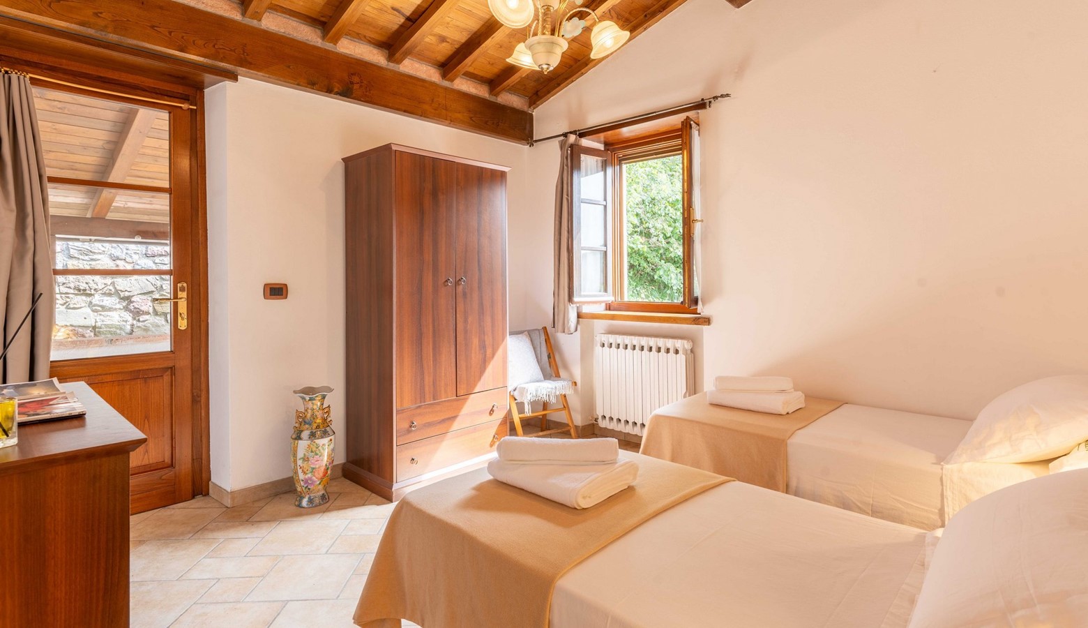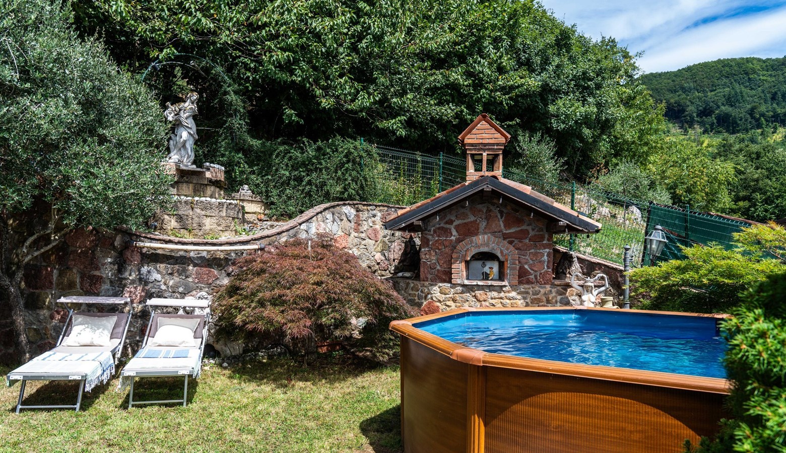 Casina Sassorosso stands out for its romantic and authentic charm just outside the mountain village of Sassorosso, offering spectacular views across the surrounding peaks. This traditional stone house embraces a timeless atmosphere, with rustic interiors, wooden beams, and simple yet characterful furnishings. Overlooking a cosy garden enriched with classical statues and a relaxing pool, it is a place where tranquillity, nature, and comfort blend harmoniously perfect for couples or anyone seeking a peaceful, romantic retreat. Of course, families are welcome too!
