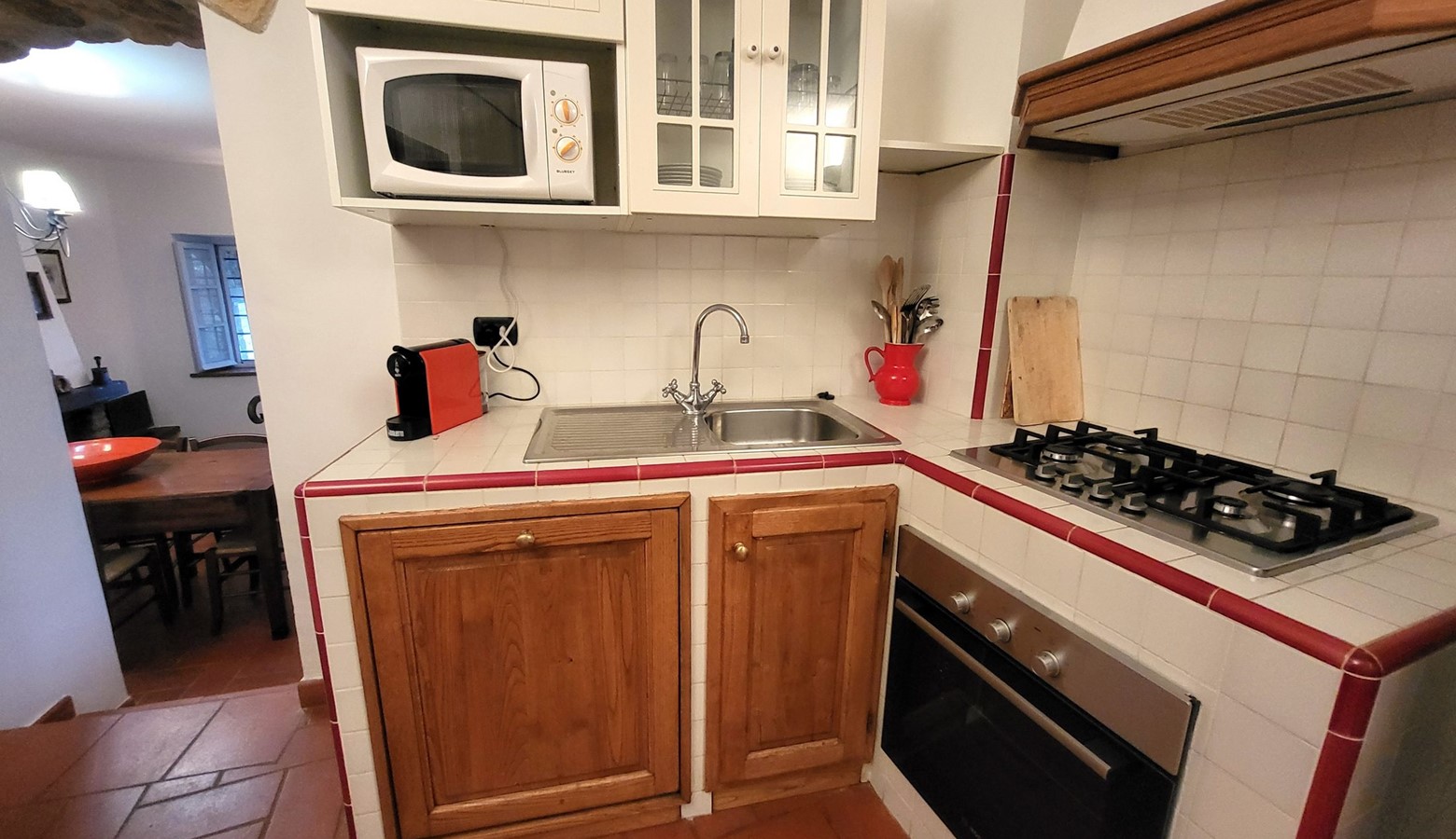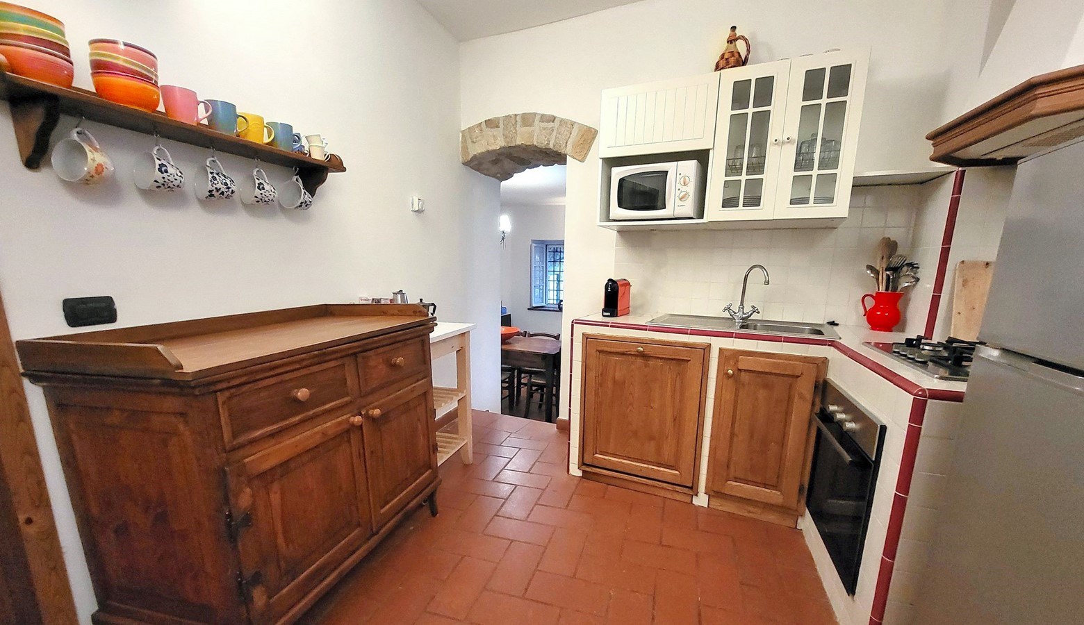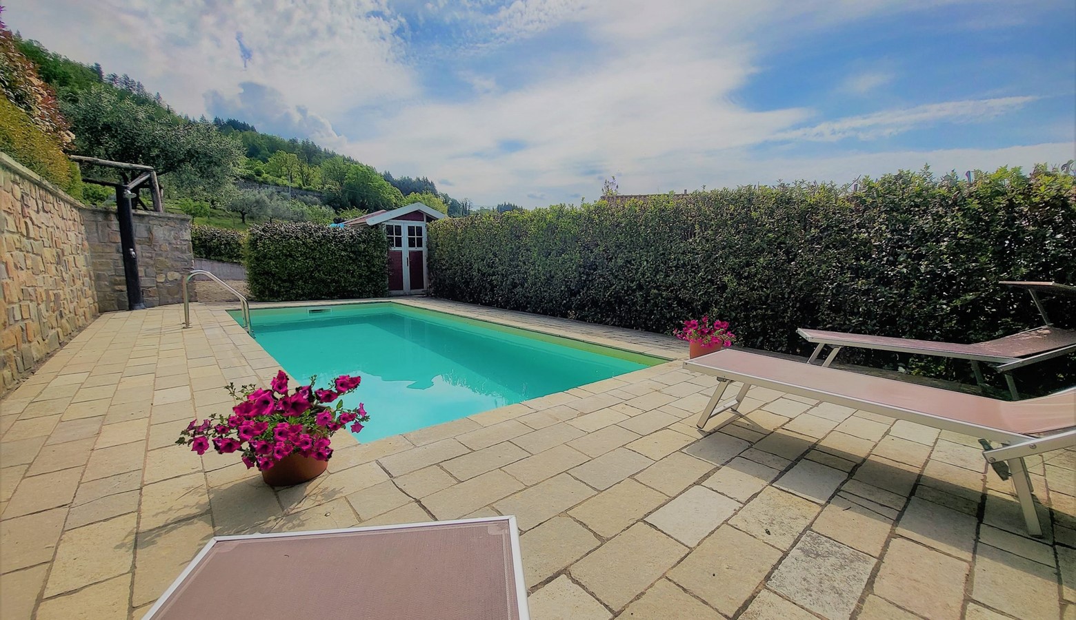 Outside, there is a private pool, garden, barbeque and a wonderful loggia for al fresco dining and relaxing. Just relax under the traditional tuscan arches, with the scent of the mature plants admiring the mountains beyond. This space is a real taste of Tuscany and a treat!