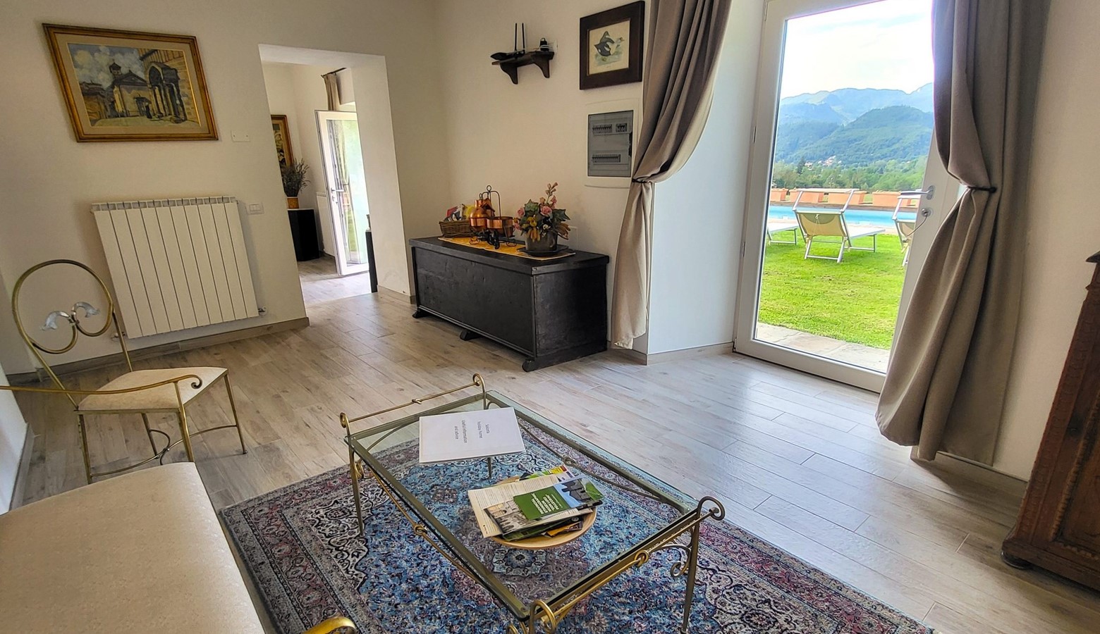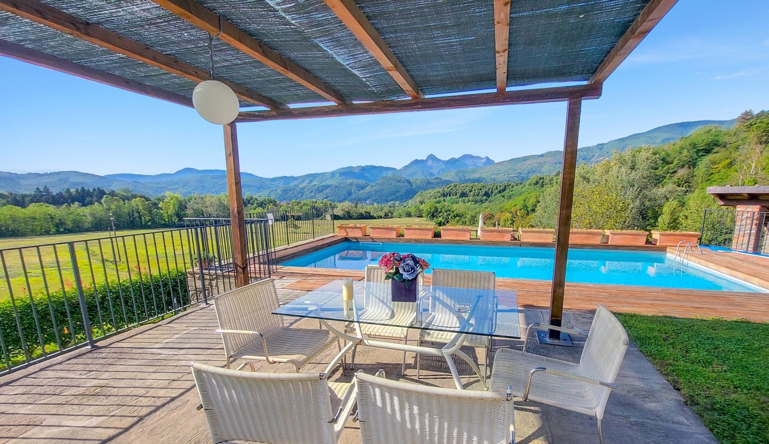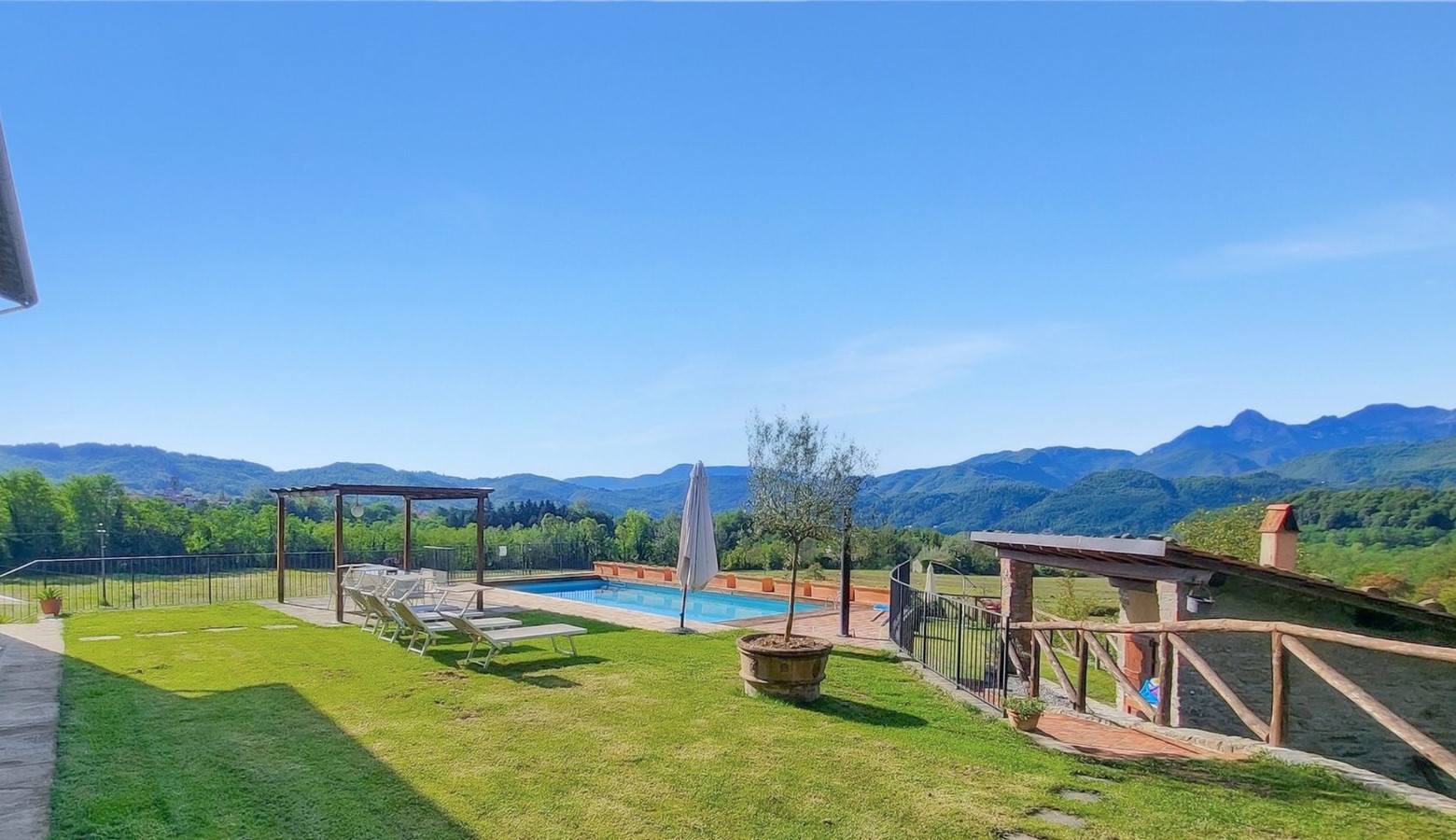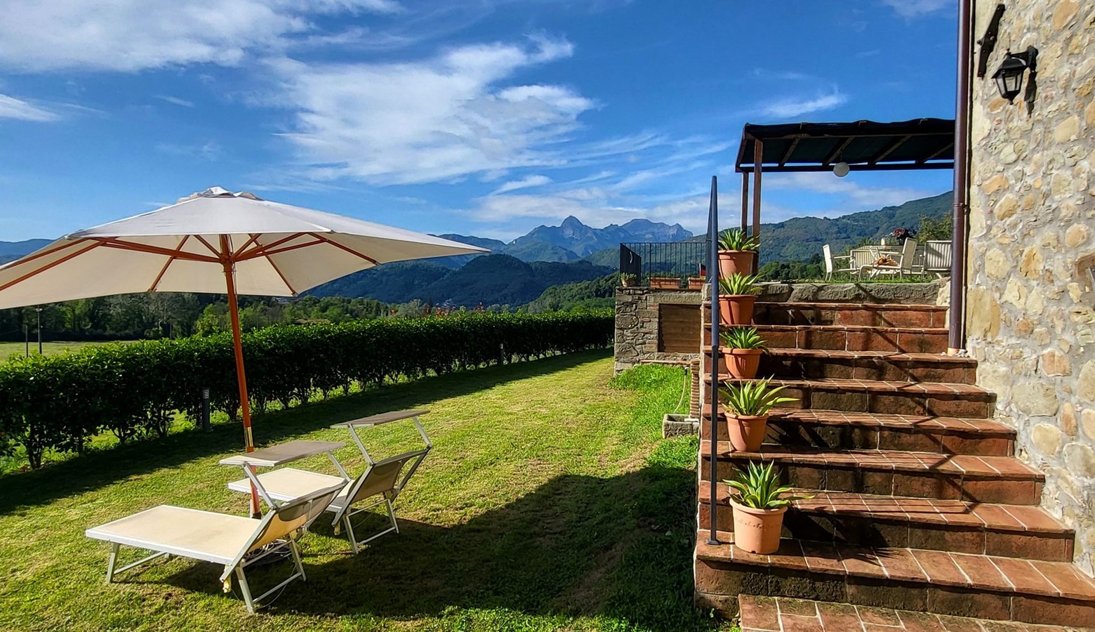 The gardens are vast and host a private 10M x 5M pool with sunbathing area and gazebo, as well as a bocce (boules court) for fun tournaments. Al fresco dining is catered for with a wonderful covered loggia offering shade and the most stunning views of the Apuane Mountains. Here there is also a wood oven for you to perfect your pizza and bread making!
