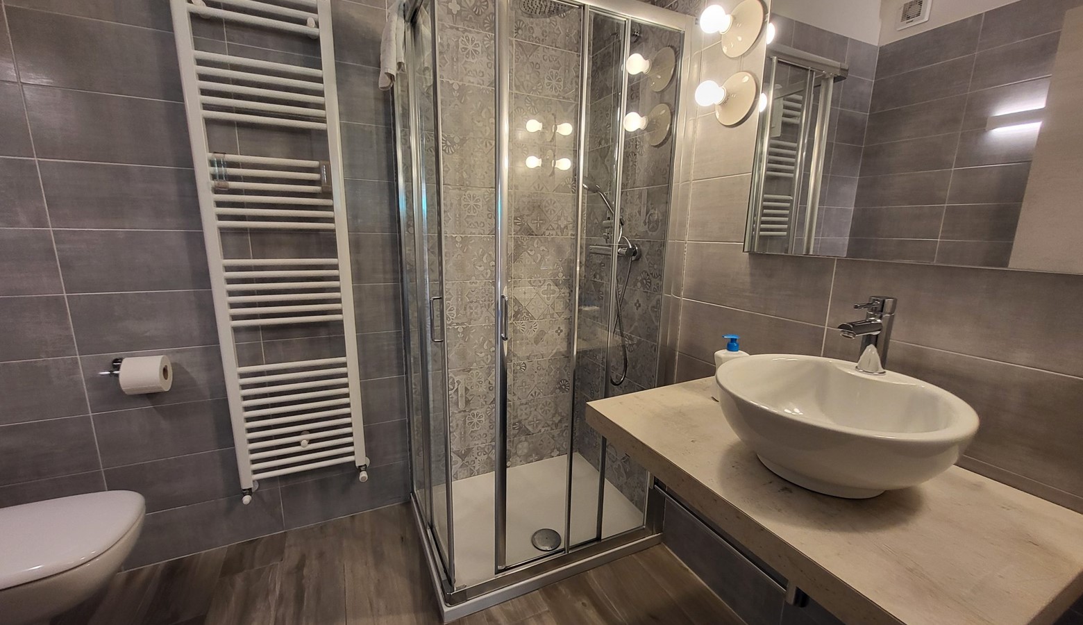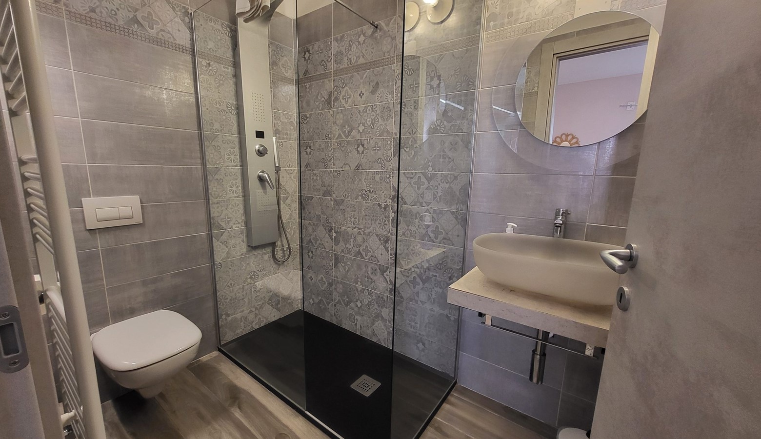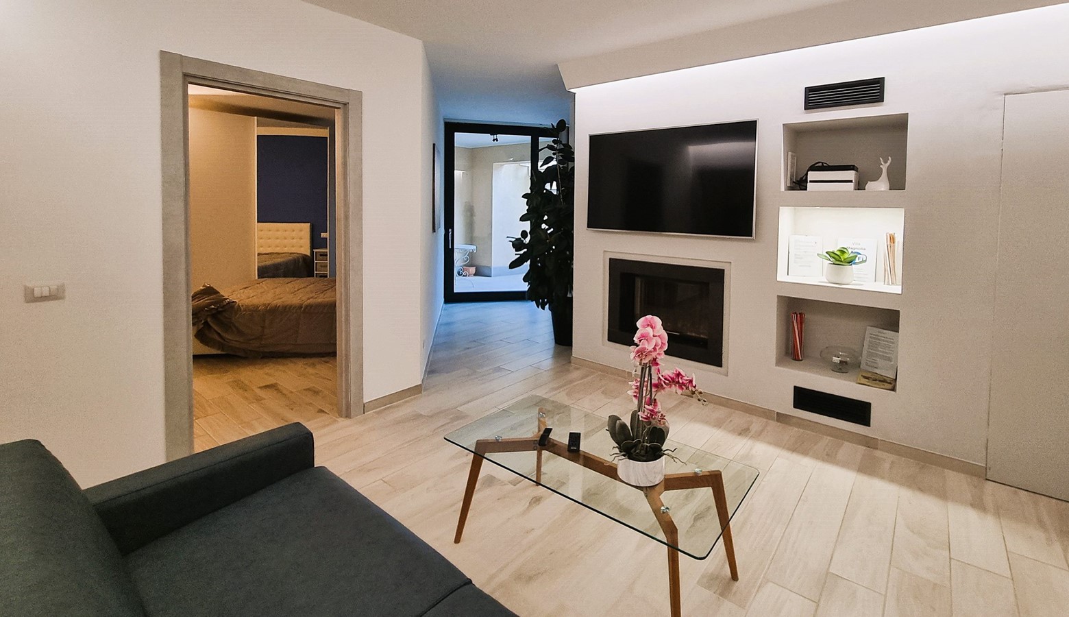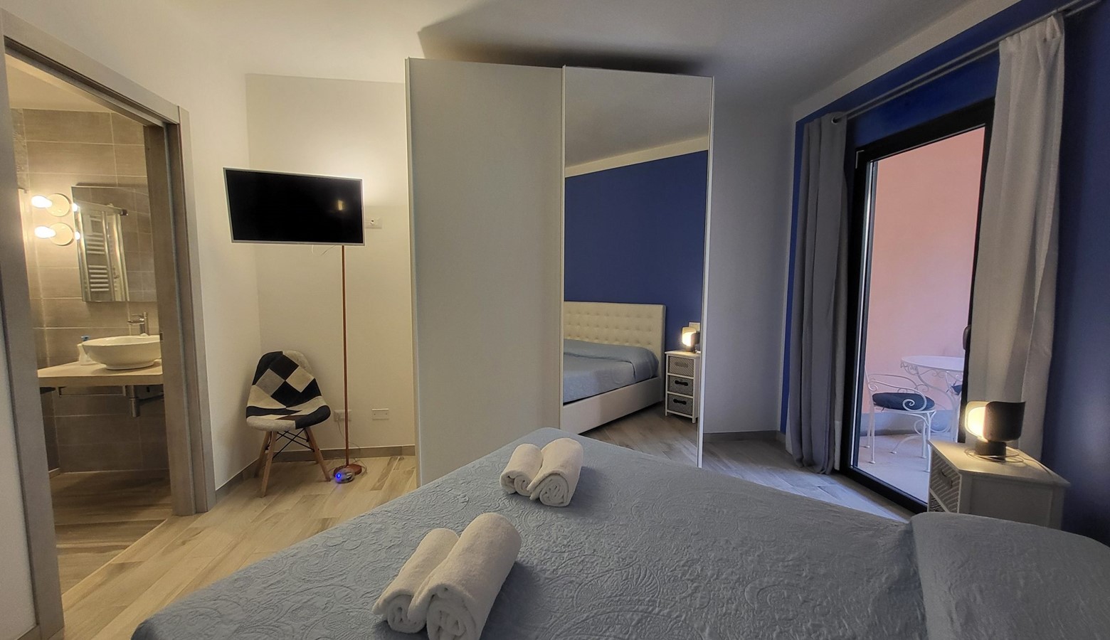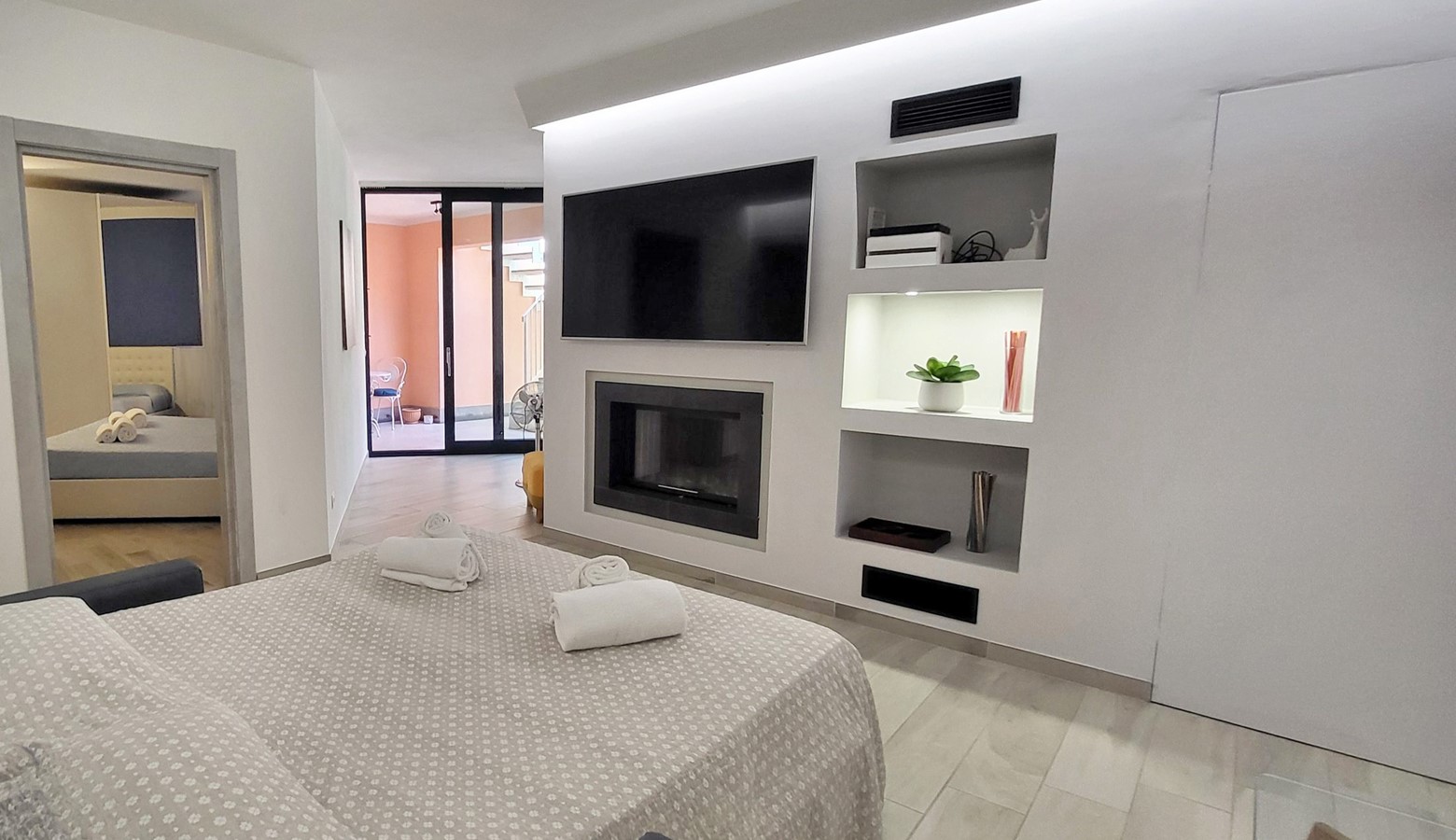 - Double room with door leading to relaxing area. TV. En-suite shower room with rain shower, WC, bidet and basin.