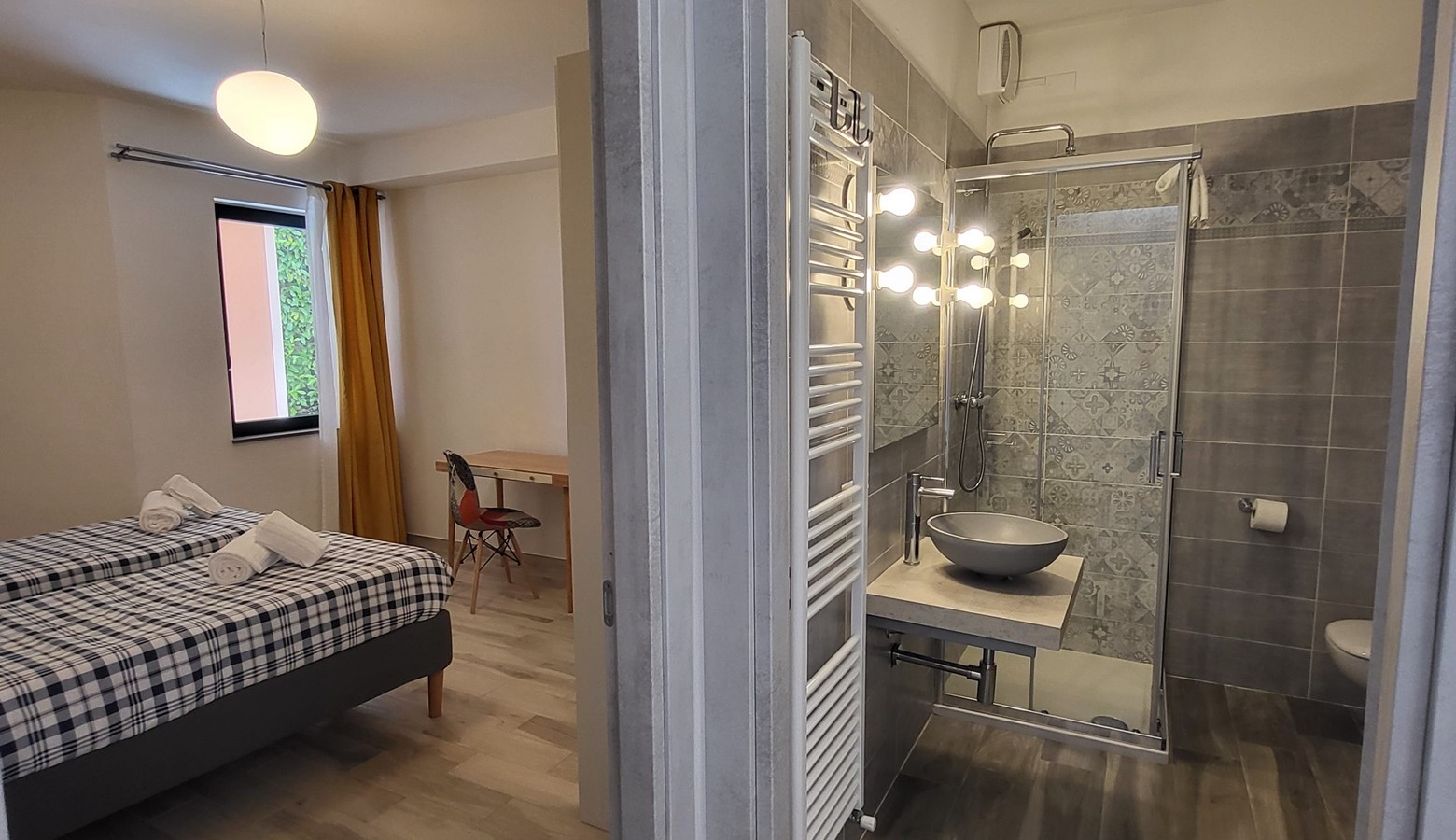 - Double room with door leading to further relazing area. En-suite shower room with rain shower, WC, bidet and basin.