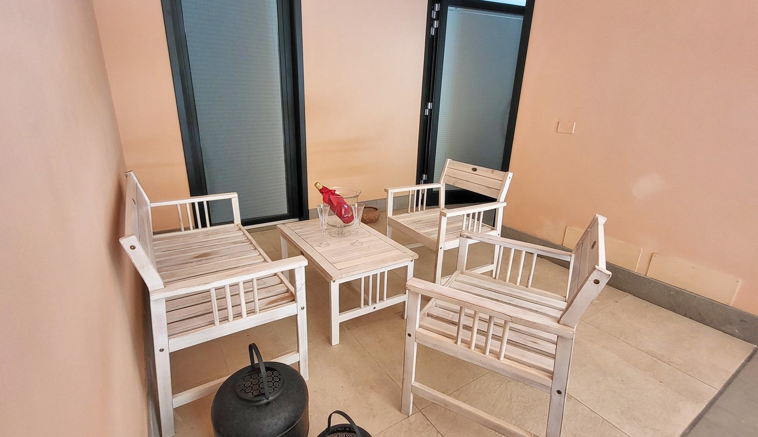 - Enter into property into smaller living/diner overlooking the pool and the stunning views. TV. Sofabed. Doors to terrace and garden.