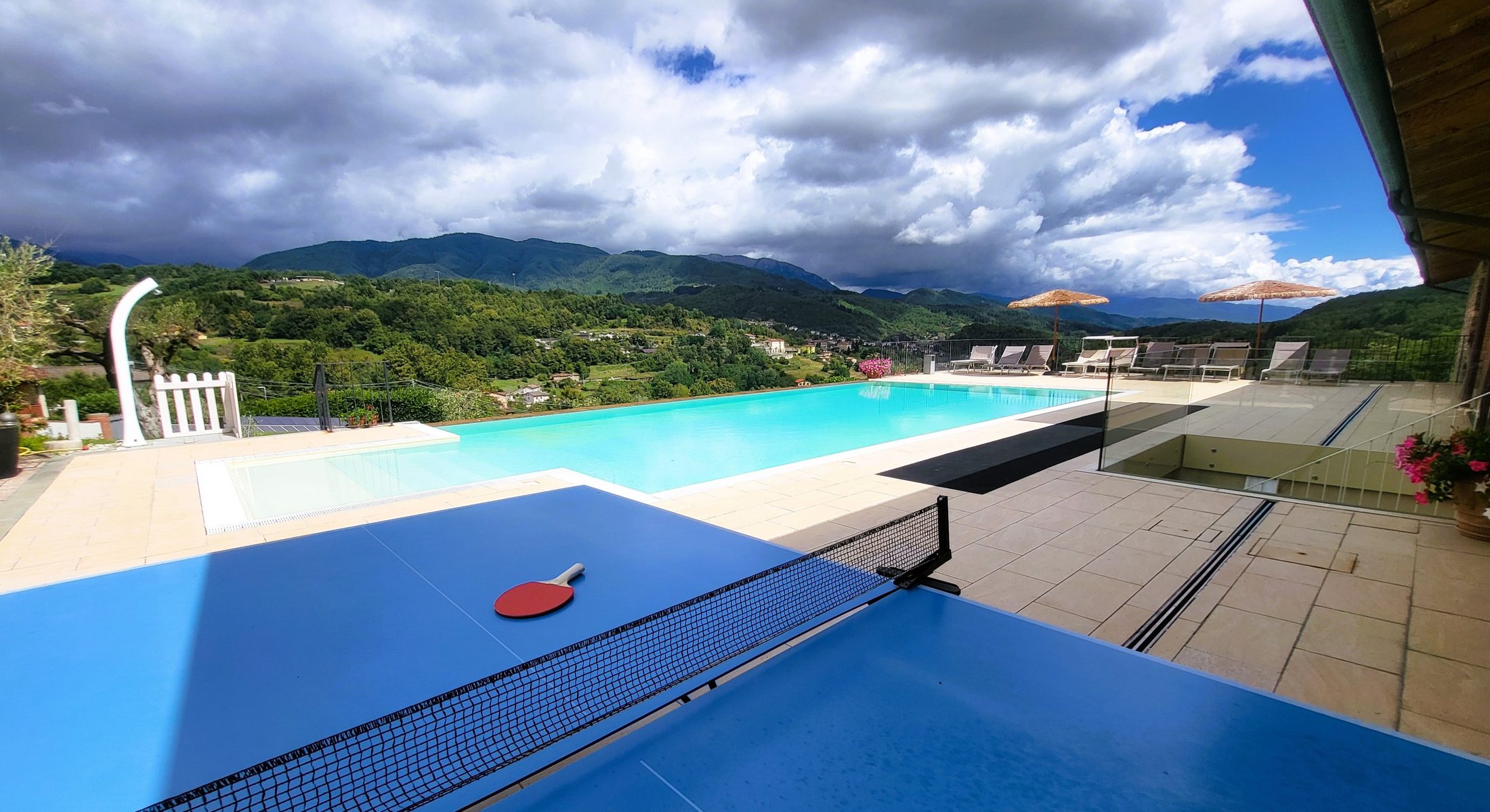 Simply exceptional! A luxurious villa with an infinity pool overlooking an exceptional view. Very welcoming owner. 2 bottles of prosecco and pizza on arrival. Fresh bread the next day. Wine and coffee pods at the end of the stay. Thank you so much !! The bedrooms are very large with en-suite bathrooms. Comfortable beds. Ping pong table. A delicious meal with a chef on the property. Villa located 1h30 from the five lands, 1h from Lucca and Massa, in a magnificent semi-mountainous region. We even went canyoning !! We highly recommend !!